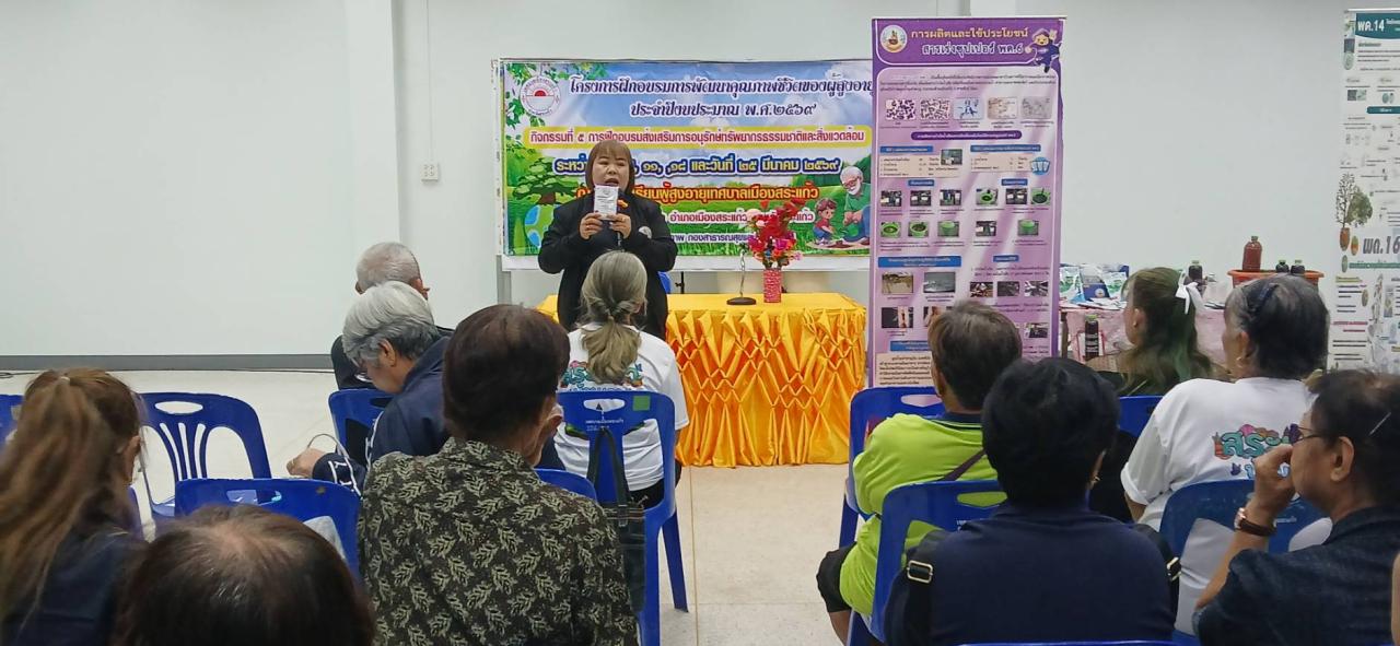 วันพุธที่ 18 มีนาคม 2569 นายขจรยศ สมสาย ผู้อำนวยการสถานีพัฒนาที่ดินสระแก้ว มอบหมายให้นางวิราวัณร์ ชัยศรี เจ้าพนักงานการเกษตรชำนาญงานพร้อมด้วยนายประภาส ชัยศรี นักวิชาการเกษตร ร่วมเป็นวิทยากรอบรมโครงการฝึกอบรมการพัฒนาคุณภาพชีวิตของผู้สูงอายุ ประจำปีงบประมาณ 2569 เพื่อส่งเสริมการอนุรักษ์ทรัพยากรธรรมชาติ ทรัพยากรธรรมชาติและสิ่งแวดล้อม อบรมบรรยายให้ความรู้ในเรื่อง การปรับปรุงบำรงดิน การแยกขยะอินทรีย์ในครัวเรือน การขยายเชื้อแบคทีเรียสังเคราะห์แสง พด.15 ณ อาคารเรียนผู้สูงอายุเทศบาลเมืองสระแก้ว จ.สระแก้ว โดยมีกลุ่มเป้าหมายผู้สูงอายุจำนวน 120 คน