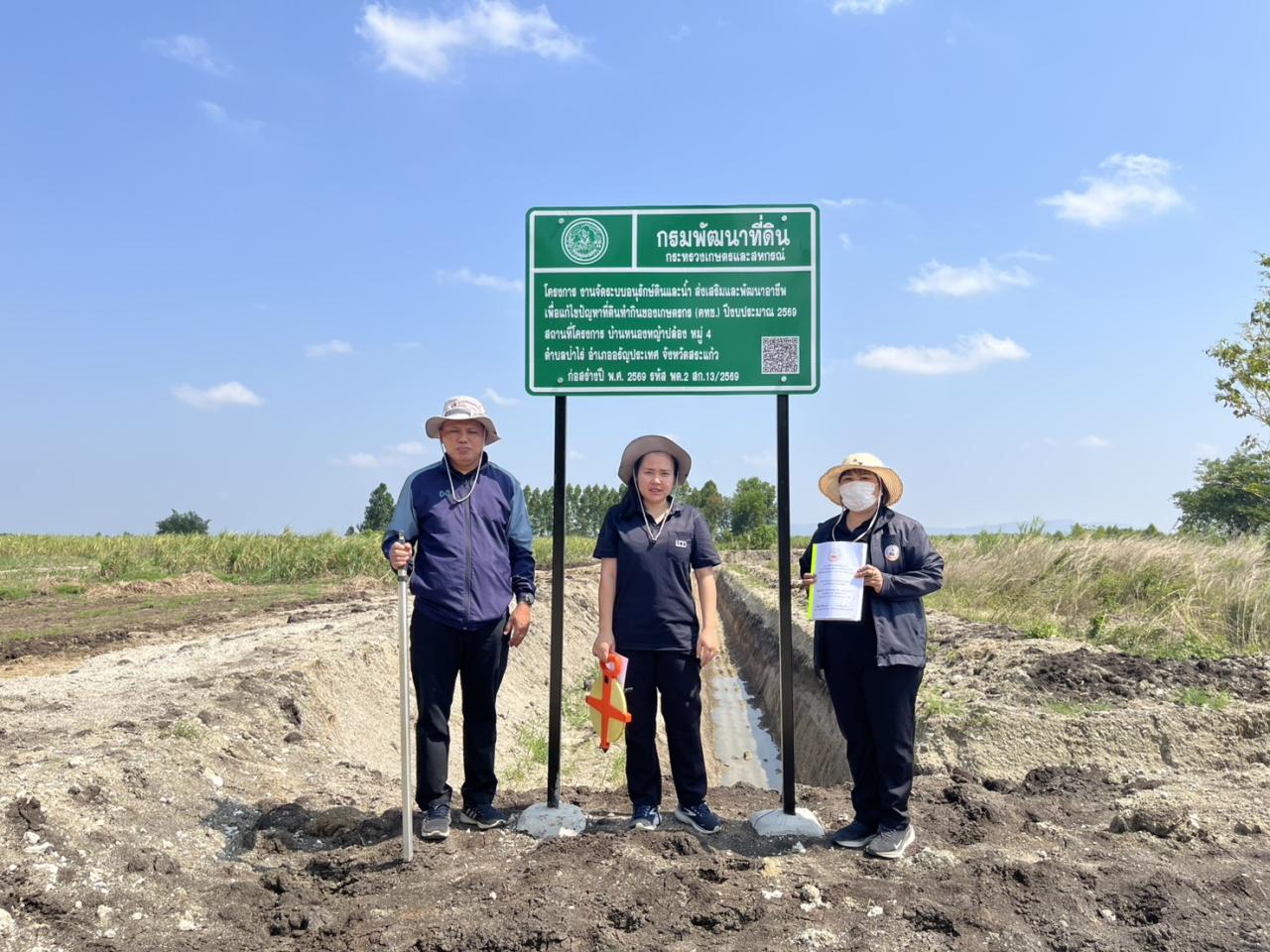 วันจันทร์ที่ 30 มีนาคม 2569 นายขจรยศ สมสาย มอบหมายให้คณะกรรมการตรวจรับงานจัดระบบอนุรักษ์ดินและน้ำโครงการส่งเสริมและพัฒนาอาชีพเพื่อแก้ไขปัญหาที่ดินทำกินของเกษตรกร (คทช.) ในพื้นที่บ้านหนองหญ้าปล้อง หมู่ 4 ตำบลป่าไร่ อำเภออรัญประเทศ จังหวัดสระแก้ว เพื่อให้ถูกต้องตามแบบมาตรฐานการก่อสร้างของกรมพัฒนาที่ดิน พร้อมส่งมอบให้แก่เกษตรกรได้ทำการเกษตรในพื้นที่ต่อไป