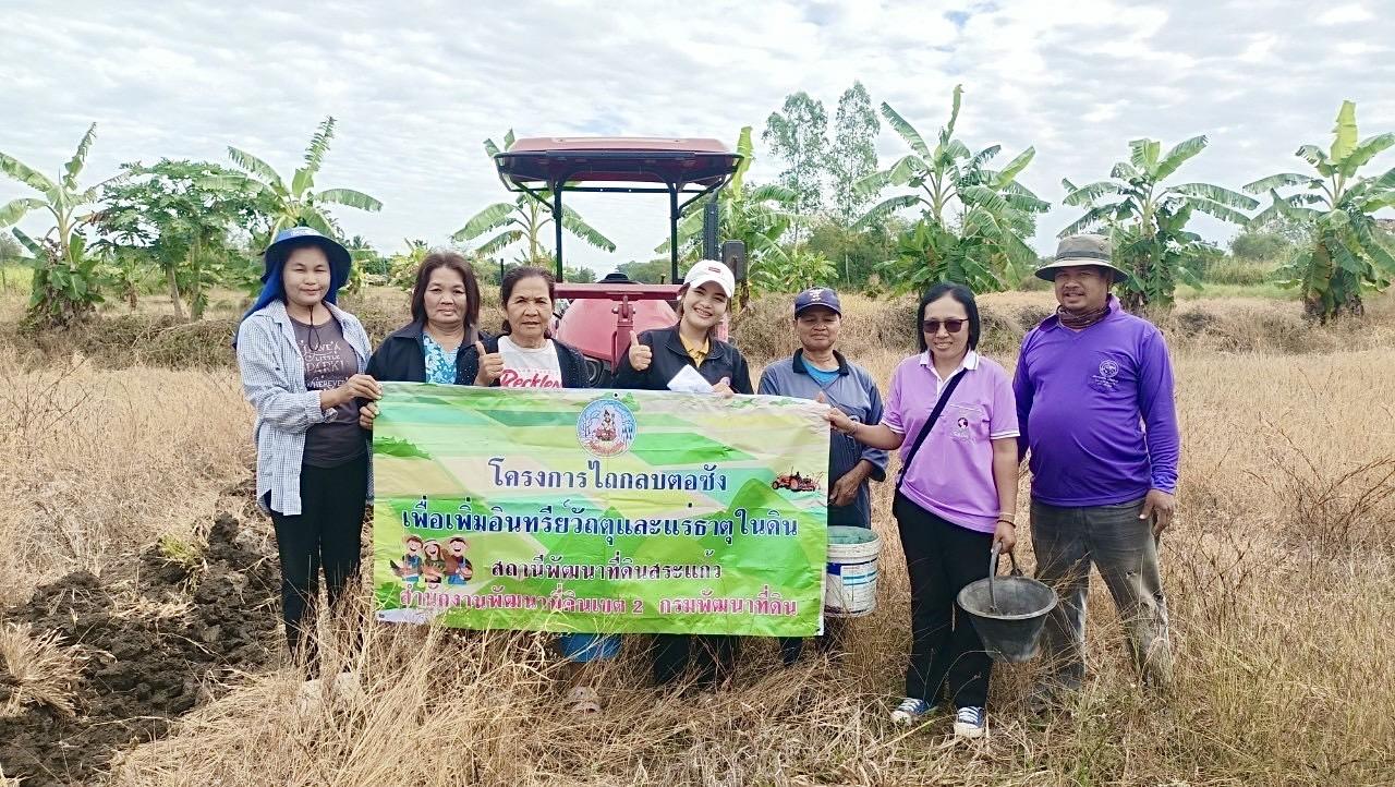 วันศุกร์ที่ 27 ธันวาคม พ.ศ.2567 นายขจรยศ สมสาย ผู้อำนวยการสถานีพัฒนาที่ดินสระแก้ว มอบหมายให้ นางสาวภานุชนาถ อรุณศรี นักวิชาการเกษตรปฏิบัติการ พร้อมด้วยนายทัศนัย สังข์จันทึก นักวิชาการเกษตร ดำเนินงานโครงการไถกลบตอซังเพื่อเพิ่มอินทรียวัตถุ ปีงบประมาณ 2568 ณ บ้านเทพนิมิตร ตำบลซับมะกรูด อำเภอคลองหาด จังหวัดสระแก้ว จำนวน 50 ไร่ และส่งเสริมการปลูกพืชปุ๋ยสด (ปอเทือง) เพื่อปรับปรุงบำรุงดิน และเพิ่มอินทรียวัตถุให้แก่ดิน
