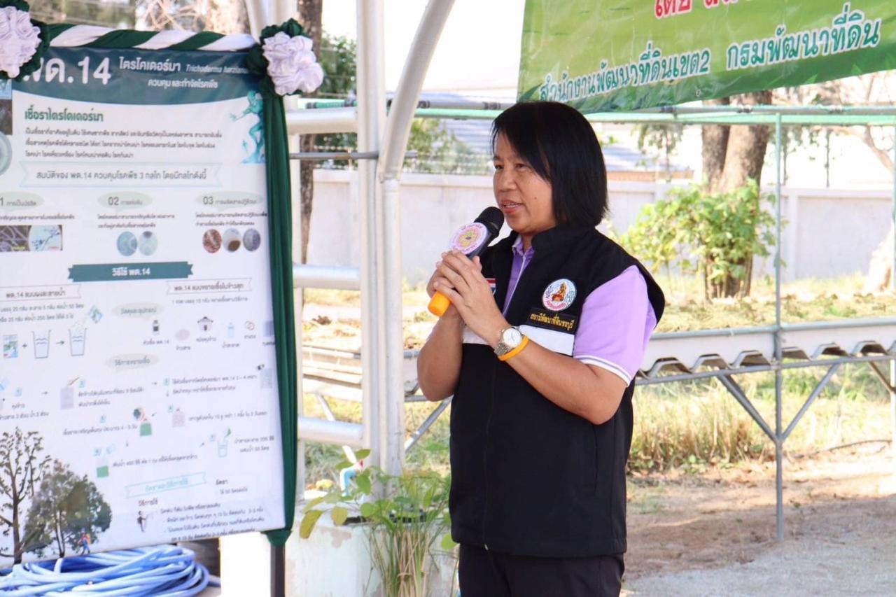 นางจุฬาลักษณ์ แก้วอ่อน ผู้อำนวยการสถานีพัฒนาที่ดินชลบุรี พร้อมเจ้าหน้าที่ จัดงานวันหมอดินอาสา ภายใต้หัวข้อ "หมอดินอาสา พัฒนาดินดี ตามวิถีเกษตรพอเพียง"