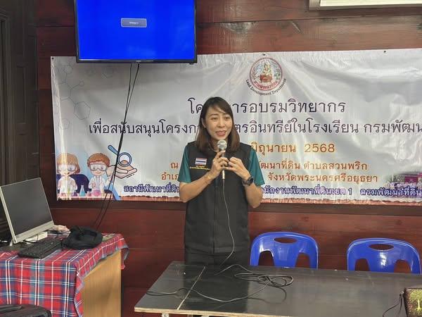 นางสาวกชกร กานตารัมภ์ ผู้อำนวยการสถานีพัฒนาที่ดินพระนครศรีอยุธยา พร้อมด้วย นายอธิโรจน์ หัตถ์สุวรรณกุล นักวิชาการเกษตรชำนาญการ และเจ้าหน้าที่หน่วยพัฒนาที่ดินของสถานีฯ ดำเนินการอบรมวิทยากร ภายใต้โครงการเกษตรอินทรีย์ในโรงเรียน กรมพัฒนาที่ดิน ปีงบประมาณ 2568 เพื่อให้ครูเกษตรหรือครูผู้รับผิดชอบการดำเนินงานที่เข้าร่วมโครงการฯ สามารถถ่ายทอดองค์ความรู้และเทคโนโลยีด้านที่ได้รับให้แก่นักเรียนในโรงเรียน และขับเคลื่อนโครงการได้อย่างเป็นรูปธรรม
