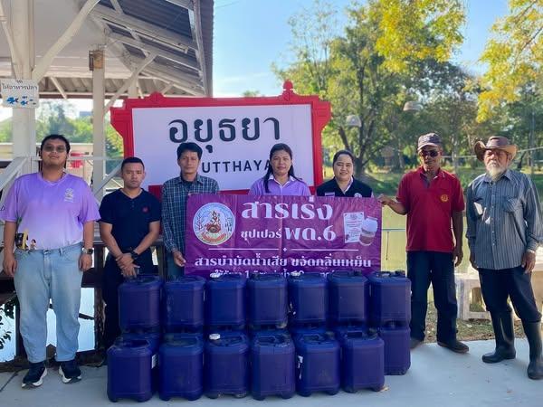 นางสาวกชกร กานตารัมภ์ ผู้อำนวยการสถานีพัฒนาที่ดินพระนครศรีอยุธยา มอบหมายให้นางอรุณศรี รอดเมฆ นักวิชาการเกษตรปฏิบัติการ นางสาวอัจจิมา ฤทธิสน นักวิชาการเกษตร นายณัฐภัทร ถาวรกิจการ นักวิชาการเกษตร และนายศักดา ฉลอง นักวิชาการเกษตร พร้อมด้วยเจ้าหน้าที่ สพด.อยุธยา ดำเนินการสนับสนุนสารบำบัดน้ำเสียงจากสารเร่งซุปเปอร์ พด.6 จำนวน 400 ลิตร เพื่อฟื้นฟูสภาพน้ำเน่าเสียของสระเก็บน้ำ ในพื้นที่ตำบลประตูชัย อำเภอพระนครศรีอยุธยา จังหวัดพระนครศรีอยุธยา