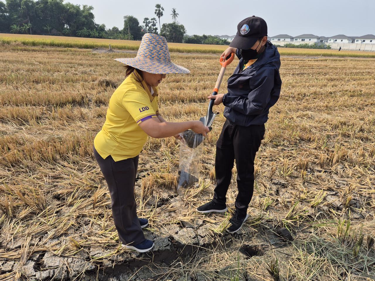 วันพฤหัสบดีที่ 23 มกราคม พ.ศ.2568 เวลา 13.00 น. นายพินิจ งาเนียม ผู้อำนวยการสถานีพัฒนาที่ดินนนทบุรี มอบหมายเจ้าหน้าที่ฝ่ายวิชาการเพื่อการพัฒนาที่ดิน ลงพื้นที่เก็บตัวอย่างดินเพื่อวิเคราะห์ดิน และดูความพร้อมของสภาพพื้นที่แปลงนา สำหรับเตรียมงาน Kick Off "ไถกลบตอซัง สร้างดินยั่งยืน ฟื้นสิ่งแวดล้อม" ประจำปีงบประมาณ พ.ศ.2568