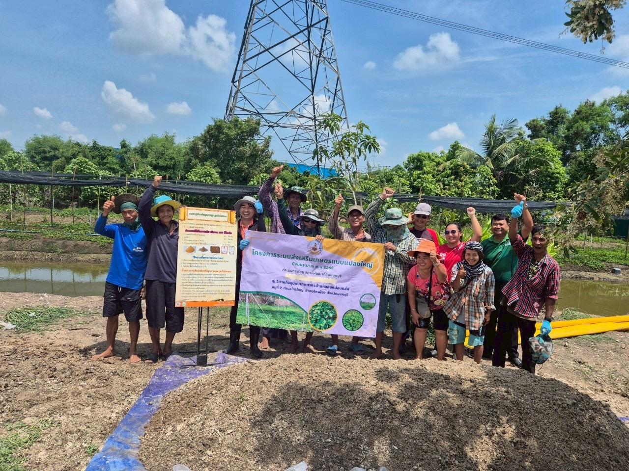 วันอังคาร ที่ 20 พฤษภาคม 2568 นายพินิจ งาเนียม ผู้อำนวยการสถานีพัฒนาที่ดินนนทบุรี มอบหมายให้เจ้าหน้าที่ฝ่ายวิชาการเพื่อการพัฒนาที่ดิน จัดกิจกรรมถ่ายทอดองค์ความรู้และสาธิตทำปุ๋ยหมัก พด. โครงการถ่ายทอดองค์ความรู้การพัฒนาที่ดินภายใต้โครงการระบบส่งเสริมเกษตรแบบแปลงใหญ่ ปีงบประมาณ พ.ศ. 2568
