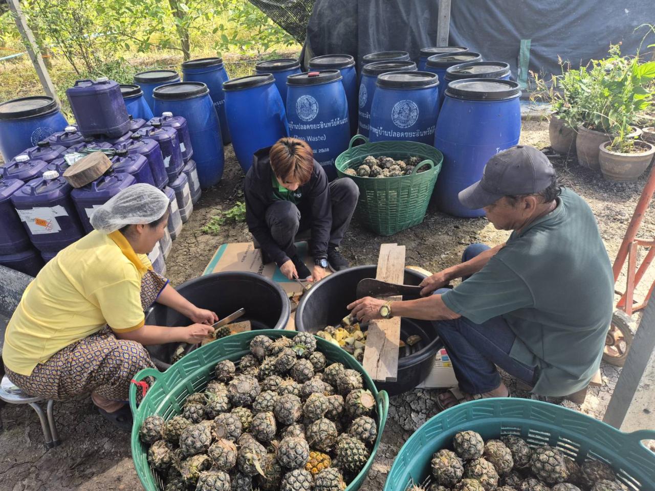 สำหรับเจ้าหน้าที่ สพด.นนทบุรี ได้ติดตามผลการดำเนินงานของกลุ่มเกษตรกรที่นำวัสดุเหลือใช้ทางการเกษตรและครัวเรือน นำกลับมาหมุนเวียนโดยใช้เศษปลา เศษข้าวสวย ผลิตเป็นน้ำหมักชีวภาพ เพื่อลดต้นทุนการผลิตและเป็นการช่วยรักษาสิ่งแวดล้อม ส่งเสริมให้มีการนําวัสดุเหลือใช้ทางการเกษตรในหมู่บ้านมาหมุนเวียนให้เกิดประโยชน์ตามหลักการของ BCG Economy Model (Bioeconomy Circular Economy Green Economy)ทั้งนี้ได้เตรียมดำเนินการนำผลไม้เหลือใช้ทางการเกษตรทำน้ำหมักชีวภาพเพื่อเตรียมสำหรับให้คนในชุมชนนำเศษปลา เศษข้าวสวย และวัสดุเหลือใช้ทางการเกษตรและในครัวเรือน มาต่อยอดขยายทำน้ำหมักใช้ในพื้นที่การเกษตรเพื่อลดต้นทุนการผลิตต่อไป