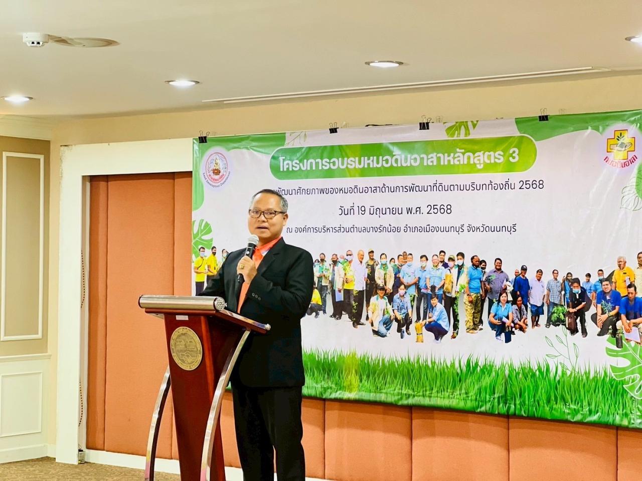 วันพฤหัสบดีที่ 19 มิถุนายน 2568 เวลา 09.30 น. นายพินิจ งาเนียม ผู้อำนวยการสถานีพัฒนาที่ดินนนทบุรี เป็นประธานเปิดงานโครงการอบรมหมอดินอาสา (หลักสูตร 3) การพัฒนาศักยภาพของหมอดินอาสาด้านการพัฒนาที่ดินตามบริบทท้องถิ่น 2568 จำนวน 70 ราย (หมอดินอาสาอำเภอเมืองนนทบุรี อำเภอบางบัวทอง และอำเภอปากเกร็ด)