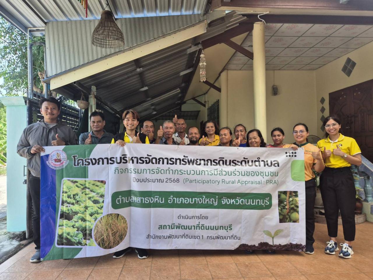 วันจันทร์ที่ 14 กรกฎาคม 2568 เวลา 09.00 น. นายพินิจ งาเนียม ผู้อำนวยการสถานีพัฒนาที่ดินนนทบุรี มอบหมายให้เจ้าหน้าที่ฝ่ายวิชาการเพื่อการพัฒนาที่ดิน ร่วมกับ ผู้นำชุมชน และเกษตรกรในพื้นที่ จัดทำกิจกรรมวิเคราะห์ชุมชนแบบมีส่วนร่วม (PRA) โครงการบริหารจัดการทรัพยากรดินระดับตำบล ปีงบประมาณ 2568