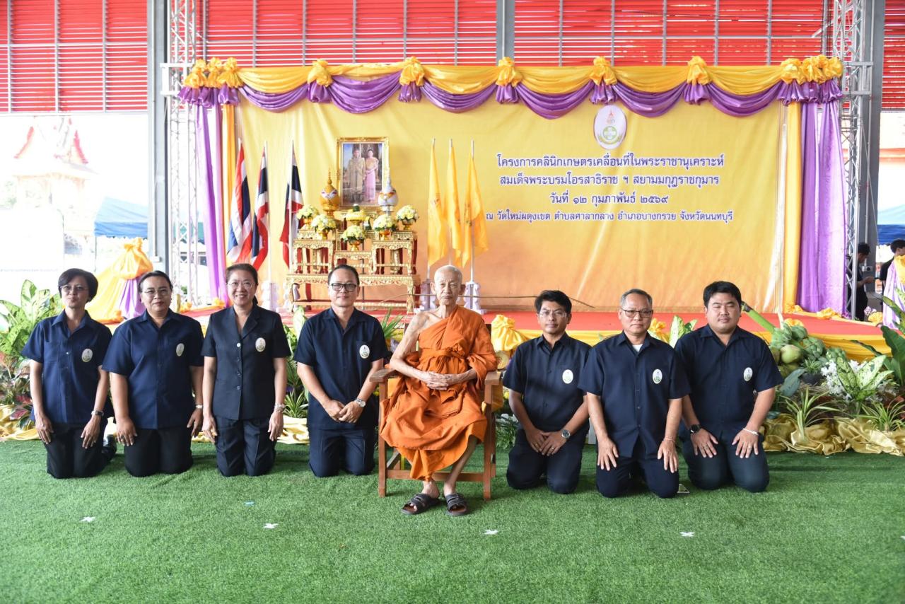 วันพฤหัสบดีที่ 12 กุมภาพันธ์ 2568 เวลา 10.00 น. นางระวีพรรณ แก้วเพียงเพ็ญ รองผู้ว่าราชการจังหวัดนนทบุรี เป็นประธานเปิดงานโครงการคลินิกเกษตรเคลื่อนที่ในพระราชานุเคราะห์ สมเด็จพระบรมโอรสาธิราช ฯ สยามมกุฎราชกุมาร ปีงบประมาณ พ.ศ. 2569 ไตรมาสที่ 2 โดยมี หัวหน้าส่วนราชการระดับจังหวัด อำเภอ ท้องถิ่น เครือข่ายภาครัฐ รัฐวิสาหกิจ ประชาชนในพื้นที่เข้าร่วมกิจกรรมดังกล่าว โดยในงานมีการจัดนิทรรศการถ่ายทอดองค์ความรู้จากหน่วยงานราชการ รัฐวิสาหกิจ และให้บริการประชาชน