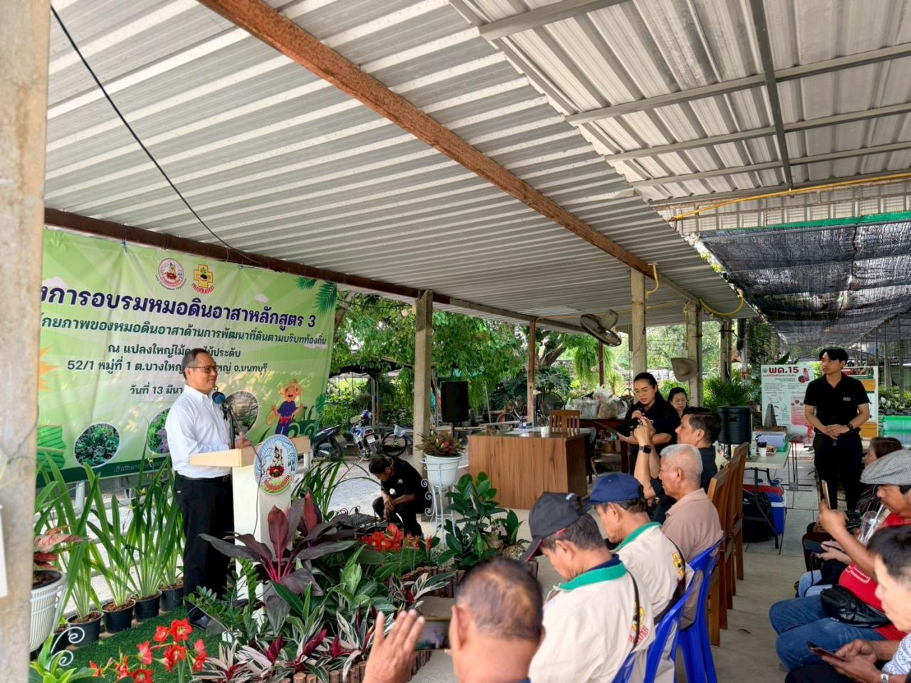 วันศุกร์ที่ 13 มีนาคม 2569 นายพินิจ งาเนียม ผู้อำนวยการสถานีพัฒนาที่ดินนนทบุรี เป็นประธานเปิดงานโครงการอบรมหมอดินอาสา หลักสูตร 3 รุ่นที่ 1 การพัฒนาศักยภาพของหมอดินอาสาด้านการพัฒนาที่ดินตามบริบทท้องถิ่น ปีงบประมาณ พ.ศ. 2569 (หมอดินอาสา อำเภอบางใหญ่ อำเภอไทรน้อย และอำเภอบางกรวย)