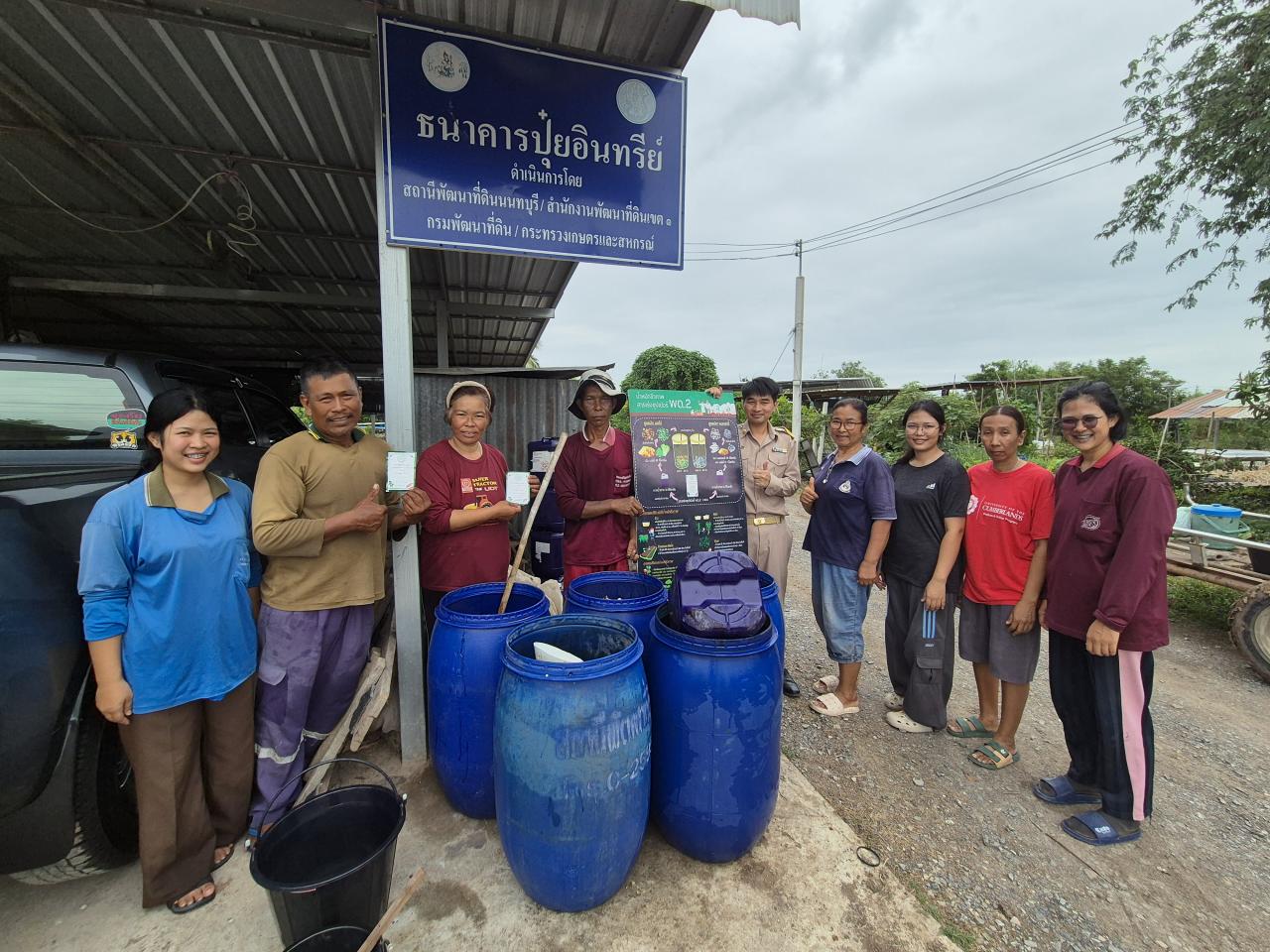 ทางเจ้าหน้าที่ฯ ได้มอบปัยจัยการผลิตน้ำหมักชีวภาพ พด.2 พร้อมทั้งร่วมถ่ายทอดความรู้และสาธิตการทำน้ำหมักชีวภาพร่วมกับสมาชิกของกลุ่มธนาคารปุ๋ยอินทรีย์ เพื่อดำเนินการผลิตและใช้ประโยชน์ปุ๋ยอินทรีย์ ลดต้นทุนการผลิต และเพิ่มรายได้ให้กับเกษตรกรในพื้นที่