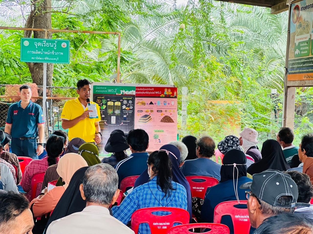 เวทีดังกล่าว เจ้าหน้าที่สถานีพัฒนาที่ดินได้อบรมให้ความรู้การผลิตปุ๋ยหมักชีวภาพจากสารเร่งซุปเปอร์ พด.1 การผลิตน้ำหมักชีวภาพจากสารเร่งซุปเปอร์ พด.2 การใช้ไตรโคเดอร์มา พด.14 การผลิตแบคทีเรียสังเคราะห์แสง พด.15 และเทคโนโลยีใหม่ๆของกรมพัฒนาที่ดิน แก่เกษตรกรในพื้นที่ เพื่อให้สามารถนำไปปรับใช้ให้เข้ากับบริบทของตนเองอย่างยั่งยืนต่อไป