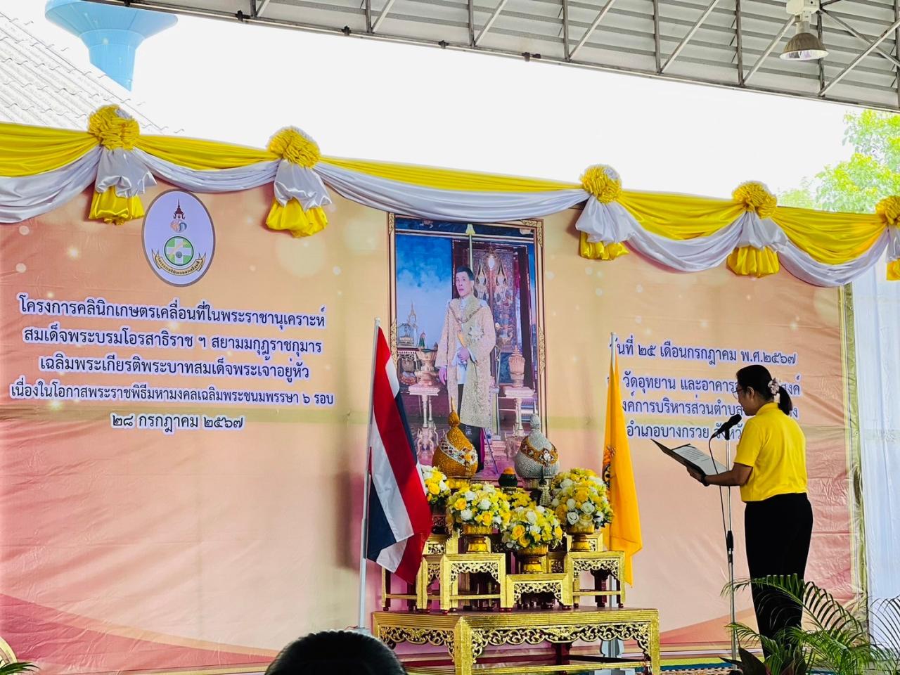 วันพฤหัสบดีที่ 25 กรกฎาคม 2567 เวลา 9.30 น. นางระวีพรรณ แก้วเพียงเพ็ญ รองผู้ว่าราชการจังหวัดนนทบุรี ได้เป็นประธานในพิธีการเปิดงานคลินิกเกษตรเคลื่อนที่ในพระราชานุเคราะห์ สมเด็จพระบรมโอรสาธิราช ฯ สยามมกุฏราชกุมาร เฉลิมพระเกียรติพระบาทสมเด็จพระเจ้าอยู่หัว เนื่องในโอกาสพระราชพิธีมหามงคล เฉลิมพระชนมพรรษา 6 รอบ 28 กรกฎาคม 2567 โดยมี หัวหน้าส่วนราชการระดับจังหวัด อำเภอ ท้องถิ่น เครือข่ายภาครัฐ รัฐวิสาหกิจ ประชาชนในพื้นที่เข้าร่วมกิจกรรมดังกล่าว โดยในงานมีการจัดนิทรรศการถ่ายทอดองค์ความรู้จากหน่วยงานราชการ รัฐวิสาหกิจ และให้บริการประชาชน