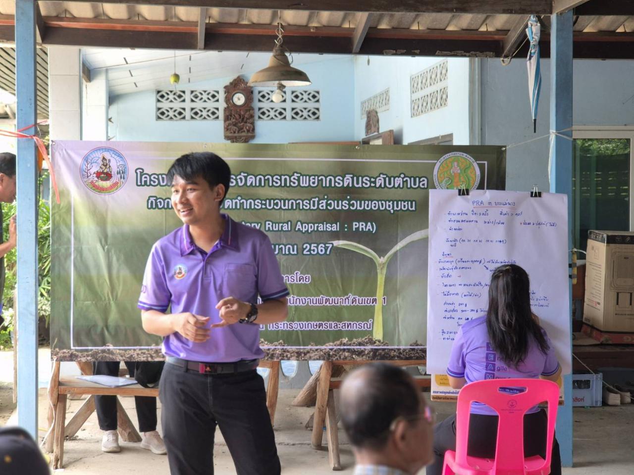 วันศุกร์ที่ 16 สิงหาคม 2567 เวลา 10.00 น. นายพินิจ งาเนียม ผู้อำนวยการสถานีพัฒนาที่ดินนนทบุรี มอบหมายให้เจ้าหน้าที่สถานีพัฒนาที่ดินนนทบุรี ร่วมกับ ผู้นำชุมชน และเกษตรกรในพื้นที่ ร่วมประชาคมการจัดทำกระบวนการมีส่วนร่วมชุมชน (PRA) เพื่อจัดทำแผนการใช้ที่ดินระดับตำบล ปีงบประมาณ 2567