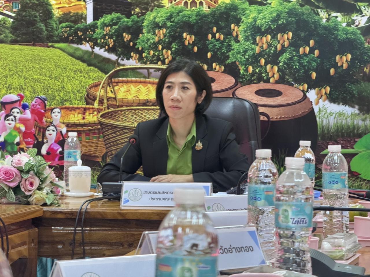 นางวินดา เหลี่ยมสมบัติ เกษตรและสหกรณ์จังหวัดอ่างทอง เป็นประธานฯ เพื่อแจ้งผลการดำเนินงานส่งเสริมและสนับสนุนวิสาหกิจชุมชน