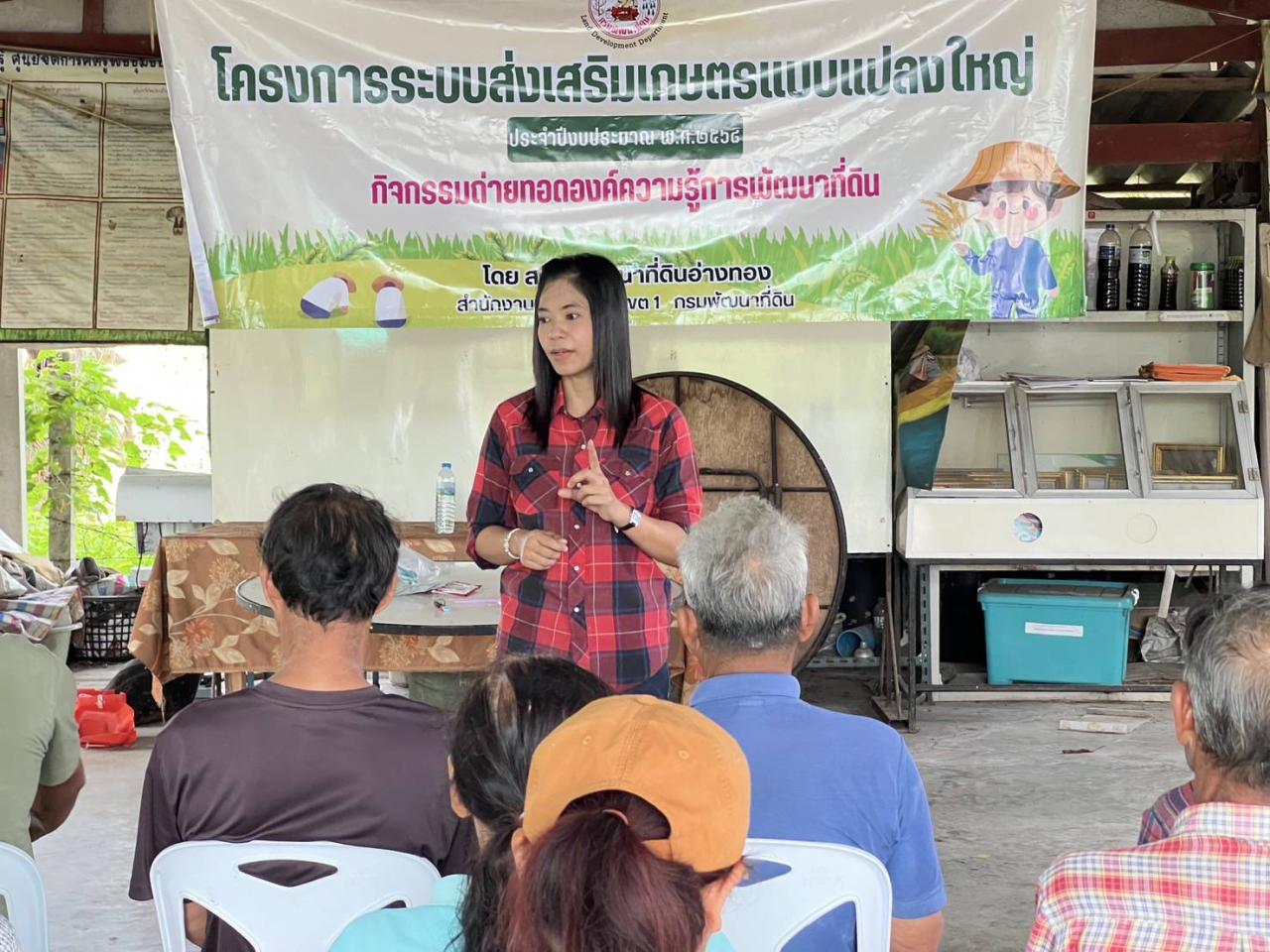 ร่วมกับสำนักงานเกษตรอำเภอไชโย จัดกิจกรรมถ่ายทอดองค์ความรู้การพัฒนาที่ดิน เช่น