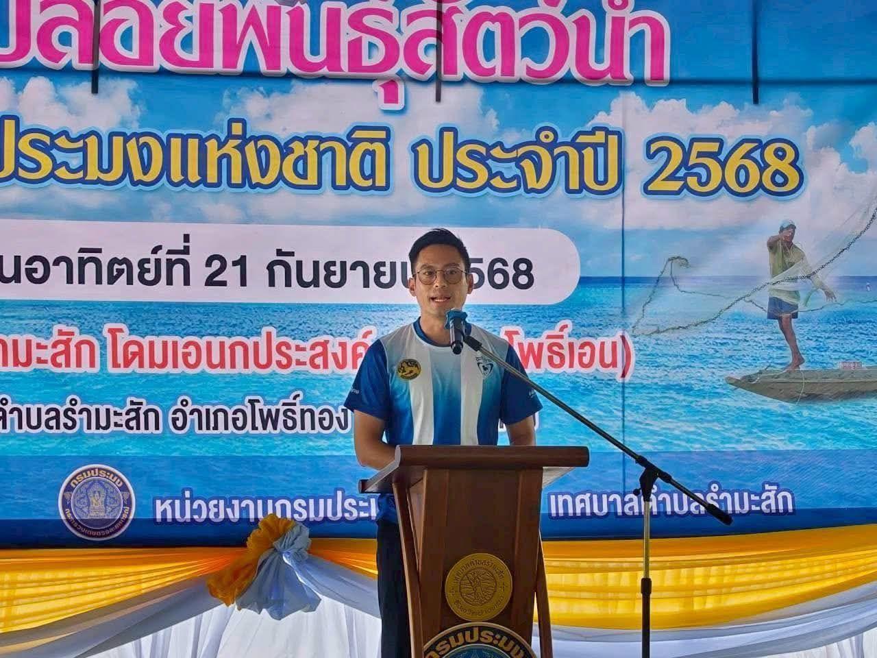 วันอาทิตย์ ที่ 21 กันยายน 2568 เวลา 09.00 น นายวัฒนา พัฒนถาวร ผู้อำนวยการสถานีพัฒนาที่ดินอ่างทอง เข้าร่วมพิธีปล่อยพันธุ์สัตว์น้ำ เนื่องในวันประมงแห่งชาติ ประจำปี 2568 โดยมี นายกรวีร์ ปริศนานันทกุล สมาชิกสภาผู้แทนราษฎรจังหวัดอ่างทอง เป็นประธานในพิธี เพื่อรณรงค์ให้ประชาชนได้ตระหนักถึงคุณค่า ของทรัพยากรสัตว์น้ำ ตลอดจนมีส่วนร่วมในการอนุรักษ์และฟื้นฟูทรัพยากรสัตว์น้ำให้สามารถใช้ประโยชน์อย่างยั่งยืน ณ โดมอเนกประสงค์ (หน้าวัดโพธิ์เอน) ตำบลรำมะสัก อำเภอโพธิ์ทอง จังหวัดอ่างทอง