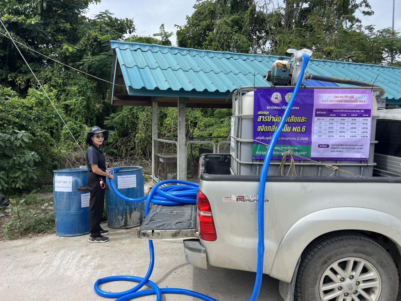 วันจันทร์ที่ 17 พฤศจิกายน พ.ศ. 2568 นายวัฒนา พัฒนถาวร ผู้อำนวยการสถานีพัฒนาที่ดินอ่างทอง มอบหมายให้นางสาวสุชารีย์ วีระกุลพิริยะ นักวิชาการเกษตรชำนาญการ และนายอภิวัฒน์ เขมะชิต นักวิชาการเกษตร ออกหน่วยบริการสารบำบัดน้ำเสียและขจัดกลิ่นเหม็นเคลื่อนที่ (พด.6) ในพื้นที่ชุมชนย่อยที่ 11 โรงพยาบาลป่าโมก อ.ป่าโมก จ.อ่างทอง ตามที่ได้รับแจ้งว่าชุมชนบริเวณดังกล่าวประสบปัญหาน้ำท่วมขังเป็นเวลานาน ส่งผลให้เกิดน้ำเน่าเสีย มีกลิ่นเหม็นและเป็นแหล่งเพาะพันธุ์ยุง สร้างความเดือดร้อนให้แก่ประชาชนในพื้นที่ สถานีพัฒนาที่ดินอ่างทอง จึงได้ดำเนินการให้บริการฉีดสารบำบัดน้ำเสียและขจัดกลิ่นเหม็น (พด.6) จำนวน 800 ลิตร เพื่อบรรเทาความเดือดร้อนของประชาชน รวมถึงการสนับสนุนน้ำหมักจุลินทรีย์ในระยะต่อไป ณ ชุมชนย่อยที่ 11 โรงพยาบาลป่าโมก อ.ป่าโมก จ.อ่างทอง