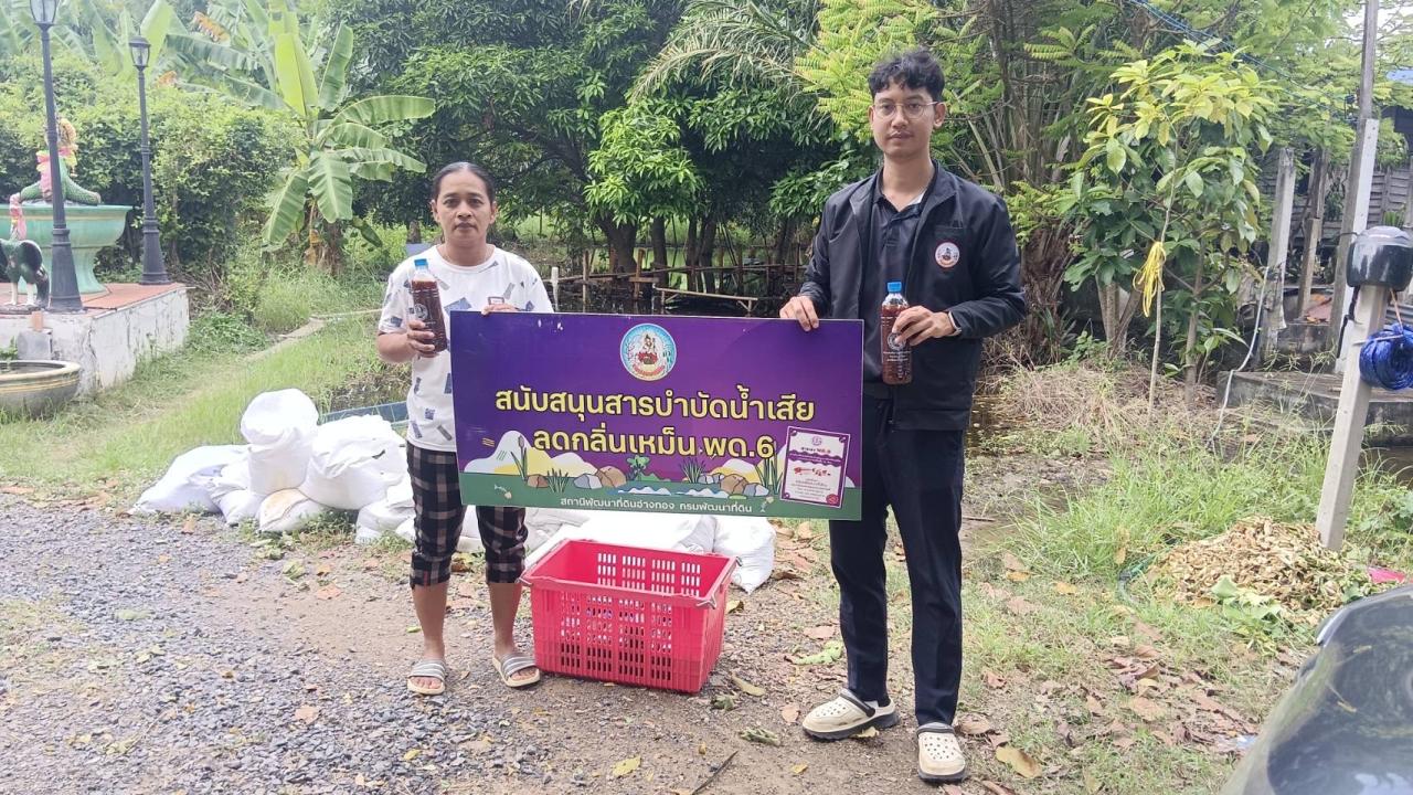 วันจันทร์ ที่ 17 พฤศจิกายน 2568 นายวัฒนา พัฒนถาวร ผู้อำนวยการสถานีพัฒนาที่ดินอ่างทอง มอบหมายให้นางสาวนาฏยา ปิตานุสร นักวิชาการเกษตรชำนาญการ และนายสุธี สายเกษม นักวิชาการเกษตรปฏิบัติการ ลงพื้นที่ติดตามสถานการณ์อุทกภัย เยี่ยมเยียนเกษตรกร ที่บ้านเรือนประสบปัญหาน้ำท่วมขัง ส่งกลิ่นเหม็น สร้างความเดือนร้อนรำคาญ พร้อมสนับสนุนสารบำบัดน้ำเสียและขจัดกลิ่นเหม็น (พด.6) เพื่อบรรเทาปัญหาในเบื้องต้น ณ หมู่ที่ 1 ตำบลตลาดกรวด อำเภอเมือง จังหวัดอ่างทอง