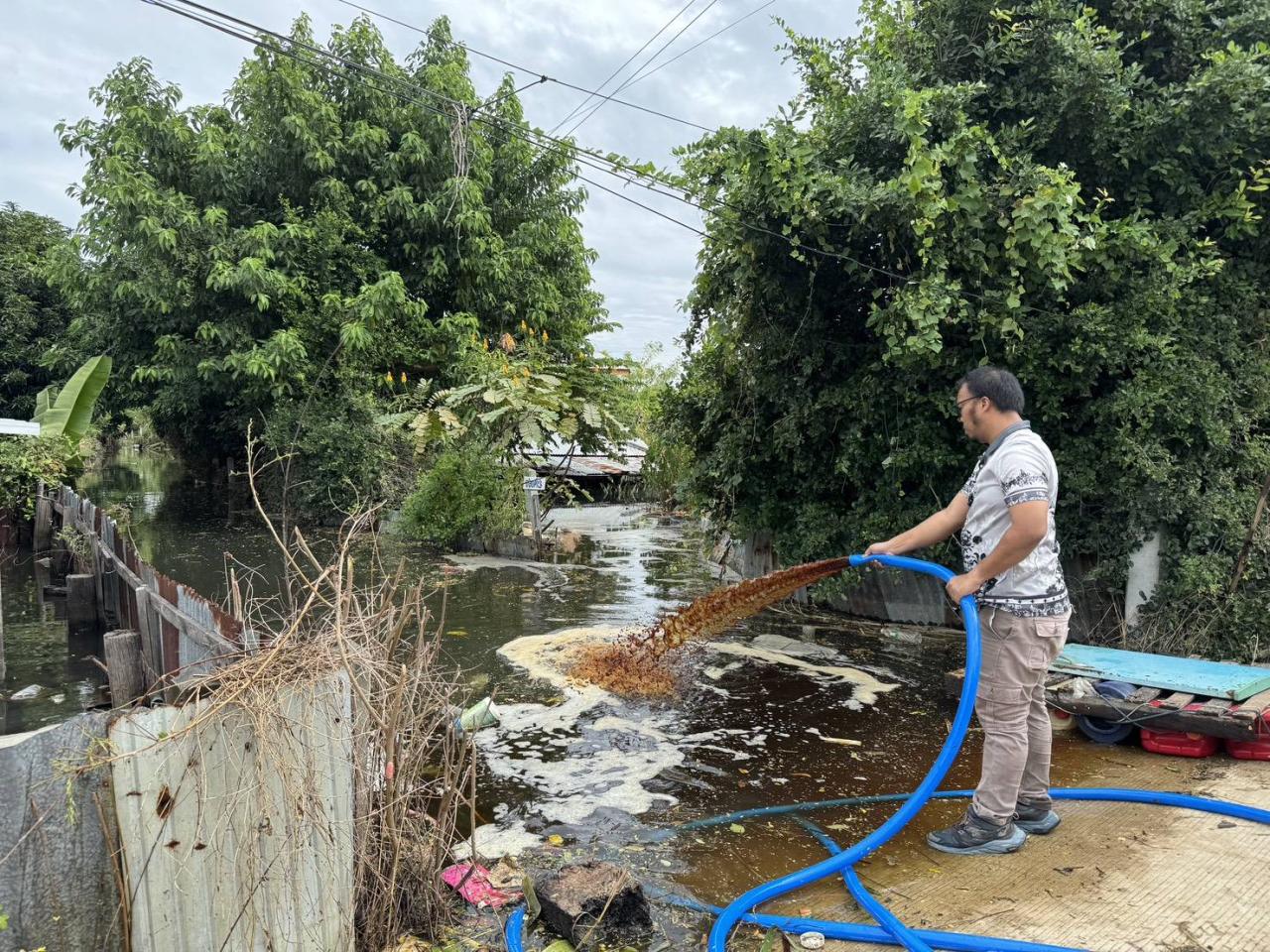 วันพุธที่ 19 พฤศจิกายน พ.ศ. 2568 นายวัฒนา พัฒนถาวร ผู้อำนวยการสถานีพัฒนาที่ดินอ่างทอง มอบหมายให้ เจ้าหน้าที่ สถานีพัฒนาที่ดินอ่างทอง ออกหน่วยบริการสารบำบัดน้ำเสียและขจัดกลิ่นเหม็น จากสารเร่งซุปเปอร์ พด.6 เคลื่อนที่ เพื่อบรรเทาทุกข์ให้กับประชาชนที่ได้รับผลกระทบจากอุทกภัย มีน้ำท่วมขัง เน่าเสีย และ ส่งกลิ่นเหม็นอย่างรุนแรง บริเวณโดยรอบที่อยู่อาศัย สร้างความเดือดร้อนรำคาญเป็นอย่างมาก เป็นจำนวน 3,000 ลิตร ณ หมู่ที่ 6 ตำบลเอกราช และ หมู่ที่ 6 ตำบลโผงเผง อำเภอป่าโมก จังหวัดอ่างทอง