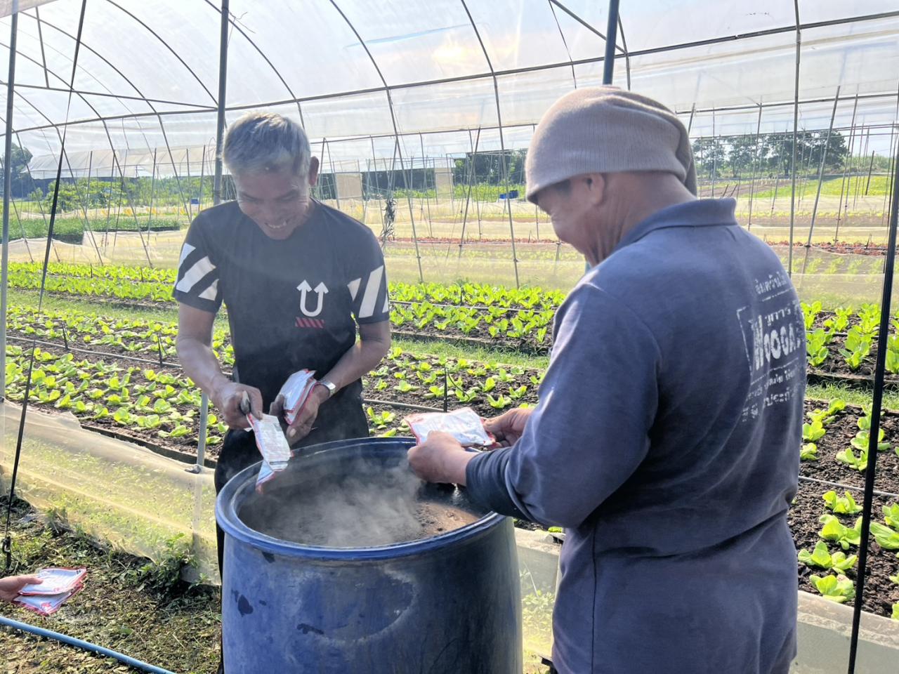 วันพุธที่ 3 ธันวาคม พ.ศ. 2568 นายวัฒนา พัฒนถาวร ผู้อำนวยการสถานีพัฒนาที่ดินอ่างทอง มอบหมายให้นางสาวสุชารีย์ วีระกุลพิริยะ นักวิชาการเกษตรชำนาญการ และนายอภิวัฒน์ เขมะชิต นักวิชาการเกษตร ดำเนินกิจกรรมสาธิตการผลิตปุ๋ยหมักจากสารเร่งซุปเปอร์ พด.1 เพื่อใช้ในการปรับปรุงบำรุงดิน เพิ่มความอุดมสมบูรณ์ให้กับดิน ณ พื้นที่โครงการฟาร์มตัวอย่างในสมเด็จพระนางเจ้าสิริกิติ์ พระบรมราชินีนาถ บ้านยางกลาง ตำบลสีบัวทอง อำเภอแสวงหา จังหวัดอ่างทอง