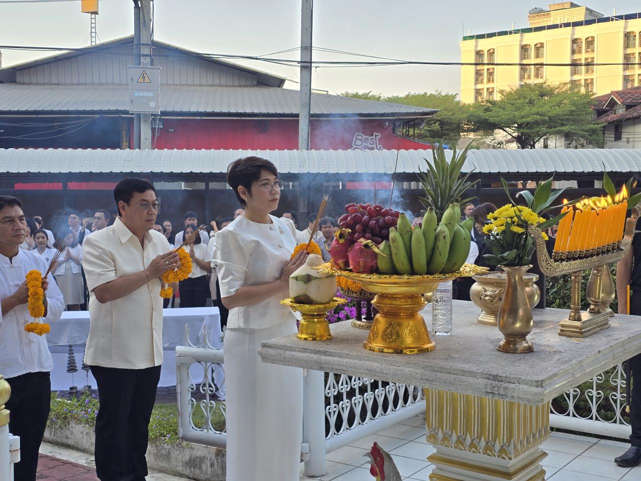 🎗️นายวัฒนา พัฒนถาวร ผู้อำนวยการสถานีพัฒนาที่ดินอ่างทอง ร่วมกับคณะผู้บริหาร สพข.1 นำทีมโดย นายชาคริต อินนะระ ผู้อำนวยการสำนักงานพัฒนาที่ดินเขต 1 และเจ้าหน้าที่เข้าร่วมพิธีทำบุญตักบาตร ไหว้ศาลพระภูมิ ศาลตายาย อนุสาวรีย์ ดร.บรรเจิด พลางกูร และตักบาตรข้าวสารอาหารแห้งแด่พระสงฆ์ จำนวน 19 รูป เพื่อร่วมกันสืบสานประเพณีและวัฒนธรรมที่สำคัญ