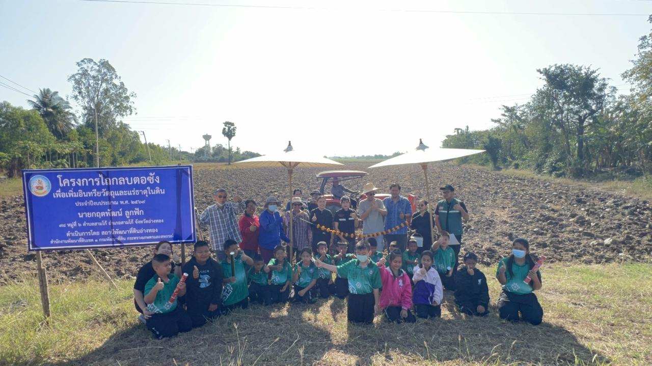 วันศุกร์ที่ 23 มกราคม พ.ศ. 2569 นายวัฒนา พัฒนถาวร ผู้อำนวยการสถานีพัฒนาที่ดินอ่างทอง มอบหมายให้นางสาวเพชรดา ปิ่นวิเศษ นักวิชาการเกษตรปฏิบัติการ นางสาวสุชารีย์ วีระกุลพิริยะ นักวิชาการเกษตรชำนาญการ และนายอภิวัฒน์ เขมะชิต นักวิชาการเกษตร ดำเนินโครงการไถกลบตอซังเพื่อเพิ่มอินทรียวัตถุและแร่ธาตุในดิน ปีงบประมาณ 2569 ในพื้นที่แปลงนาของนายกฤตพัฒน์ ลูกฟัก หมอดินอาสา เพื่อเป็นตัวอย่างการทำเกษตรกรรมแบบไม่เผา ให้เกษตรกรได้ตระหนักถึงปัญหาหมอกควันและฝุ่นละออง และมีส่วนร่วมในการลดผลกระทบต่อการเกิดภาวะโลกร้อน ในการนี้ได้ดำเนินการในพื้นที่จำนวน 10 ไร่ ณ ตำบลสามโก้ อำเภอสามโก้ จังหวัดอ่างทอง