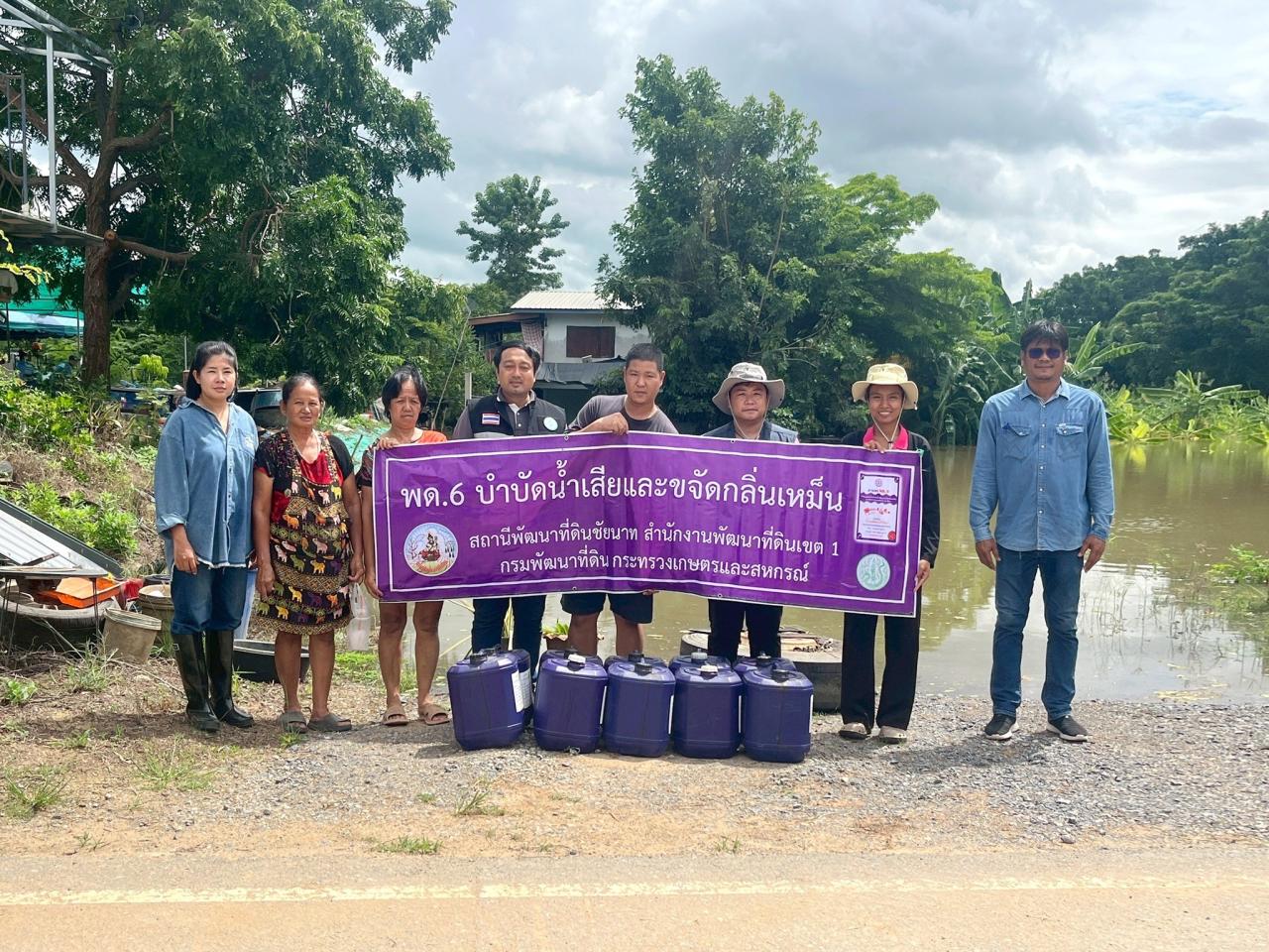 วันที่ 30 กันยายน 2568 สถานีพัฒนาที่ดินชัยนาท โดยหน่วยพัฒนาที่ดินที่ 2 นายวันวิสาข์ จันทิกา นักวิชาการเกษตรชำนาญการ พร้อมด้วย นางสาวกนกวรรณ เพ็ญศรี นักวิชาการเกษตร และเจ้าหน้าที่เกษตรตำบลตลุก ร่วมดำเนินการเทสารบำบัดน้ำเสียและขจัดกลิ่นเหม็น จากน้ำหมักชีวภาพสารเร่งซุปเปอร์ พด.6 ของกรมพัฒนาที่ดิน จำนวน 400 ลิตร เพื่อช่วยบรรเทาความเดือดร้อนของประชาชนในพื้นที่ หมู่ที่ 1 และ หมู่ที่ 4 ตำบลตลุก อำเภอสรรพยา จังหวัดชัยนาท ที่ได้รับผลกระทบจากปัญหาน้ำเน่าเสียที่ท่วมขังเป็นเวลานาน