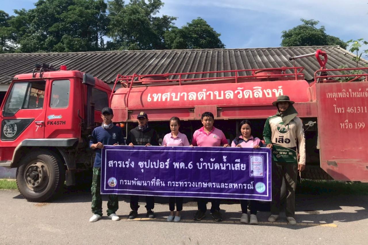 วันที่ 7 ตุลาคม 2568 สถานีพัฒนาที่ดินชัยนาท สนับสนุนสารบำบัดน้ำเสีย ซุปเปอร์ พด.6 ให้กับสำนักงานเทศบาลตำบลวัดสิงห์ จำนวน 2,000 ลิตร เพื่อใช้บำบัดน้ำเสีย ขจัดกลิ่นเหม็น ในบริเวณสถานที่กำจัดขยะมูลฝอยของเทศบาลตำบลวัดสิงห์ อำเภอวัดสิงห์ จังหวัดชัยนาท ที่ได้รับผลกระทบจากปัญหาน้ำท่วมขังไม่ระบาย ส่งผลให้น้ำเน่าเสีย และส่งกลิ่นเหม็น