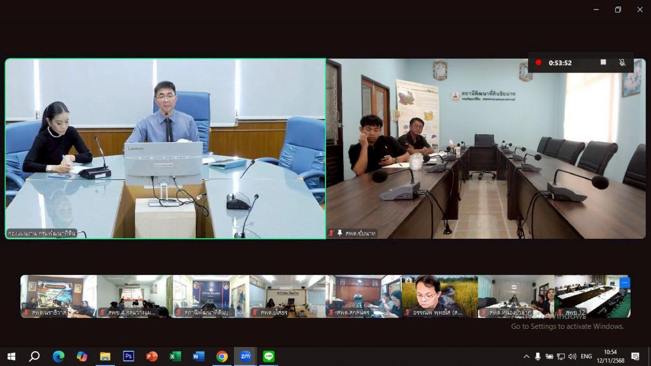 วันที่ 12 พฤศจิกายน 2568 นางสาวรัตติยา โตจีน ผู้อำนวยการสถานีพัฒนาที่ดินชัยนาท มอบหมาย นายสายชล ปิ่นนาค เจ้าพนักงานการเกษตรชำนาญงาน พร้อมด้วย นายกิตติ หล้าหนู เจ้าหน้าที่วิเคราะห์นโยบายและแผน และนายอุรัจฉัท เอี่ยมละออ เจ้าหน้าที่ระบบงานคอมพิวเตอร์ เข้าร่วมประชุมโครงการบริหารจัดการที่ดินในพื้นที่เกษตรกรรม เพื่อเข้าสู่ความเป็นกลางทางคาร์บอน (Carbon Neutrality) ครั้งที่ 1 ประจำปีงบประมาณ 2569 ณ ห้องประชุมสถานีพัฒนาที่ดินชัยนาท ตำบลหนองมะโมง อำเภอหนองมะโมง จังหวัดชัยนาท โดยมี นายวิศิษฐ์ งามสม ผู้อำนวยการกองแผนงาน เป็นประธานการประชุมฯ ผ่านระบบออนไลน์ Zoom meeting จากห้องประชุมกองแผนงาน ชั้น 4 อาคาร 1 กรมพัฒนาที่ดิน กรุงเทพฯ