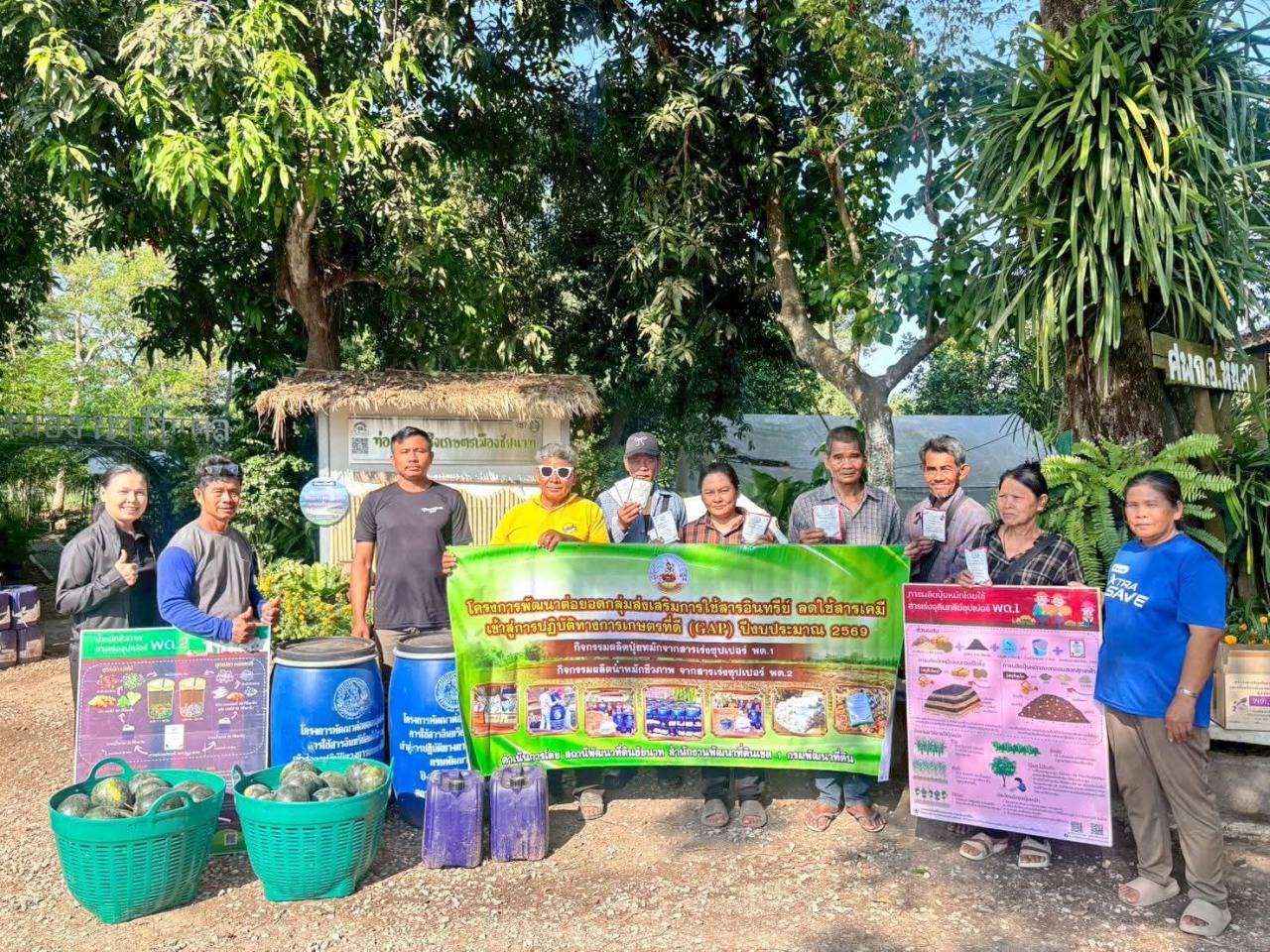 🍀 วันพุธที่ 11 มีนาคม พ.ศ. 2569 สถานีพัฒนาที่ดินชัยนาท โดยหน่วยพัฒนาที่ดินที่ 1 นางจารุวรรณ มีสม นักวิชาการเกษตรชำนาญการ พร้อมด้วย นางสาววิจิตรา มงคล นักวิชาการเกษตร ร่วมขับเคลื่อนการดำเนินงานโครงการพัฒนาต่อยอดกลุ่มส่งเสริมการใช้สารอินทรีย์ลดใช้สารเคมีเข้าสู่การปฏิบัติทางการเกษตรที่ดี (GAP) ปีงบประมาณ 2569 โดยส่งเสริมการผลิตปุ๋ยหมักจากสารเร่งซุปเปอร์ พด.1 การผลิตน้ำหมักชีวภาพจากเร่งซุปเปอร์ พด.2 พร้อมกับสนับสนุนอุปกรณ์และปัจจัยการผลิตทางการเกษตร (ถังหมัก วัสดุหมัก สารเร่งซุปเปอร์ พด.) ให้กับกลุ่มเกษตรในโครงการฯ ณ ศูนย์ฝึกปฏิบัติการพัฒนาที่ดิน หมู่ที่ 9 ตำบลสามง่ามท่าโบสถ์ อำเภอหันคา จังหวัดชัยนาท