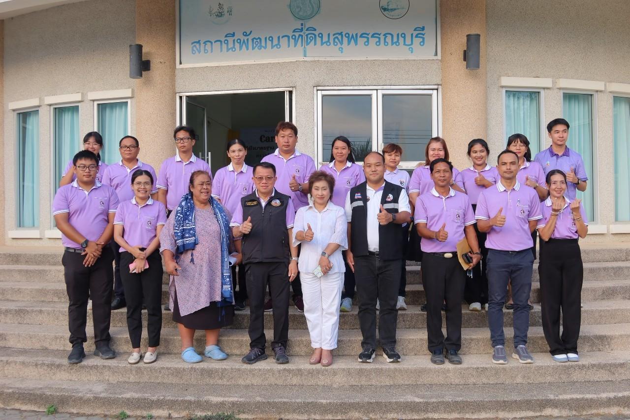 วันอังคารที่ 11 มีนาคม พ.ศ. 2568 เวลา 16.30 น. นายองอาจ นักฟ้อน ผู้อำนวยการสถานีพัฒนาที่ดินสุพรรณบุรี พร้อมด้วยข้าราชการ เจ้าหน้าที่สถานีร่วมต้อนรับ นายทวีศักดิ์ ธนเดโชพล อธิบดีกรมพัฒนาที่ดินพร้อมคณะ ที่ได้ให้เกียรติมาเยี่ยมสถานีพัฒนาที่ดินสุพรรณบุรีพร้อมพบปะพูดคุยกับเจ้าหน้าที่ และรับฟังการกล่าวรายงานแผนผลการดำเนินงาน ปัญหา อุปสรรคต่างๆ ของกิจกรรมที่กำลังดำเนินงานปีงบ 2568 จากผู้อำนวยการสถานี นายองอาจ นักฟ้อน พร้อมให้แนวทางการปฏิบัติงาน วิธีการทำงานให้งานสำเร็จ และเป็นประโยชน์กับเกษตรกรมากที่สุดพร้อมให้กำลังใจเจ้าหน้าที่และร่วมถ่ายภาพกับเจ้าหน้าที่สถานีในฐานะผู้ใต้บังคับบัญชาโดยตรงก่อนจะเดินทางกลับเข้ากรุงเทพฯต่อไป