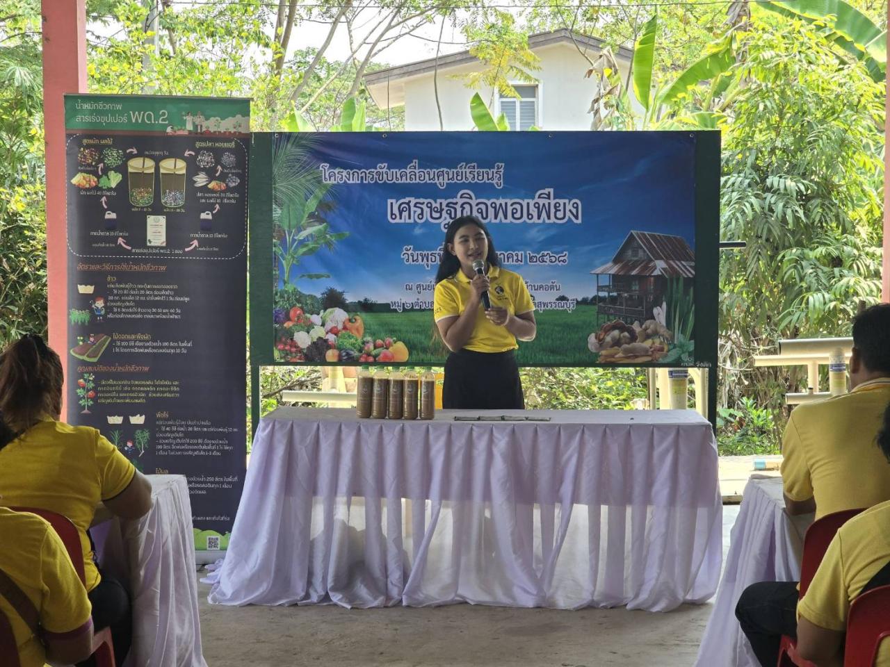 วันพุธที่ 12 มีนาคม 2568 นายองอาจ นักฟ้อน ผู้อำนวยการสถานีพัฒนาที่ดินสุพรรณบุรี มอบหมายนางสาวนาฏนภา ลมูลจิตต์ นักวิชาการเกษตร เป็นวิทยากรบรรยาย"การสาธิตการทำน้ำหมักชีวภาพ พด.2" ให้เกษตรกรที่เข้าร่วมโครงการขับเคลื่อนศูนย์เรียนรู้เศรษฐกิจพอเพียง ณ ศูนย์เรียนรู้เศรษฐกิจพอเพียง บ้านคอตัน หมู่ที่ 6 ต.วังลึก อ.สามชุก จังหวัดสุพรรณบุรี