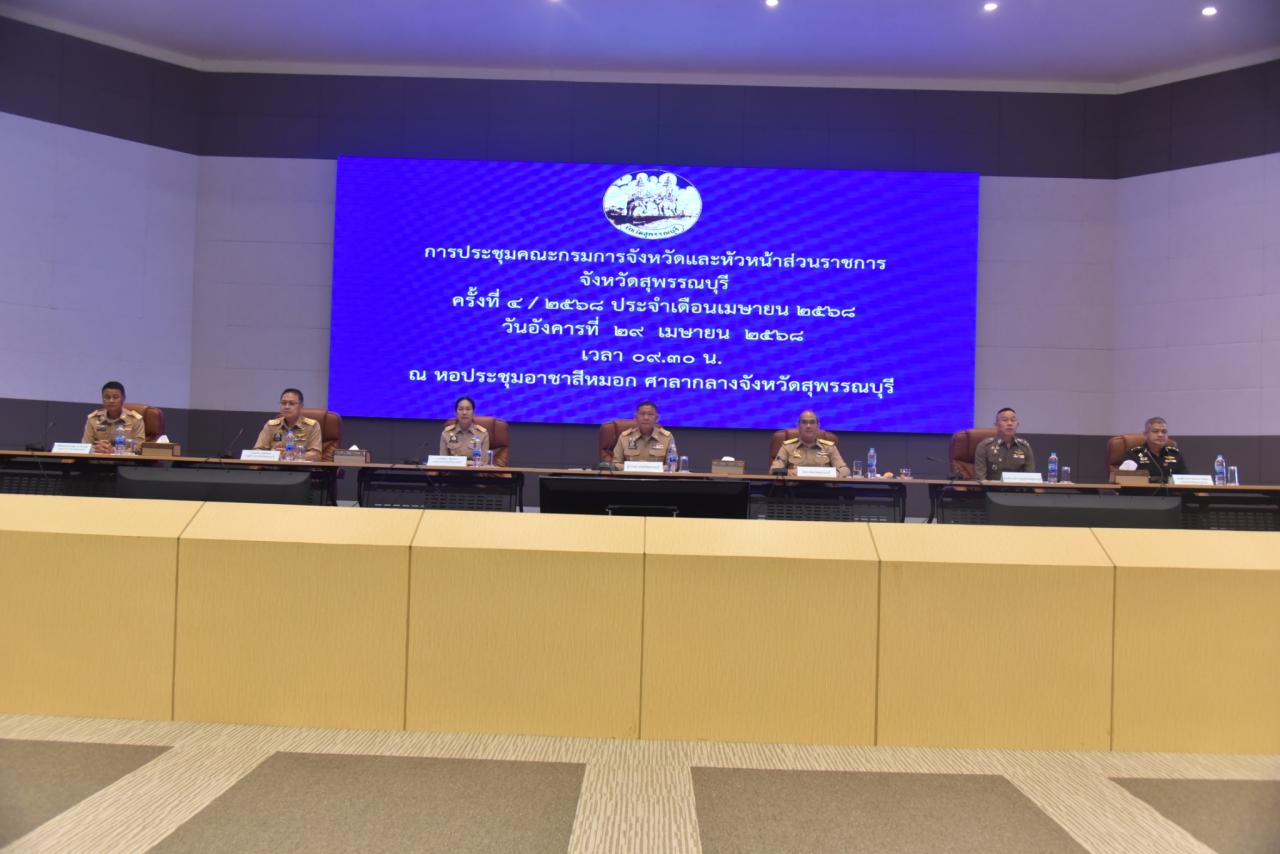มีนายพิริยะ ฉันทดิลก ผู้ว่าราชการจังหวัดสุพรรณบุรี เป็นประธานการประชุม พร้อมด้วยหัวหน้าส่วนราชการในจังหวัดสุพรรณบุรี เข้าร่วมประชุม โดยในที่ประชุมได้รายงานผลความก้าวหน้า สรุปผลการดำเนินงาน และการเผยแพร่ประชาสัมพันธ์ของส่วนราชการต่าง ๆ อาทิเช่น ผลการเบิกจ่ายและใช้จ่ายเงินงบประมาณจังหวัดสุพรรณบุรี ประจำปีงบประมาณ 2568 การคาดหมายลักษณะอากาศบริเวณจังหวัดสุพรรณบุรี,สาระน่ารู้ด้านการเกษตร เรื่อง การผลิตจุลินทรีย์ย่อยสลายตอซังและฟางข้าว เป็นต้น