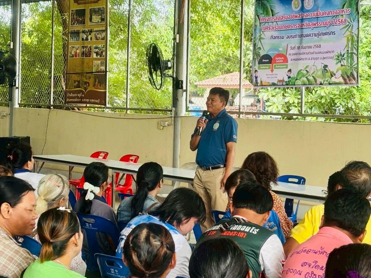 วันพฤหัสบดีที่ 18 กันยายน 2568 นายองอาจ นักฟ้อน ผู้อำนวยการสถานีพัฒนาที่ดินสุพรรณบุรี มอบหมายฝ่ายวิชาการเพื่อการพัฒนาที่ดิน นายทนง ไม้เลี้ยง นักวิชาการเกษตรชำนาญการพิเศษ รับผิดชอบดูแลพื้นที่อำเภอสามชุก ร่วมบรรยายให้ความรู้ในโครงการส่งเสริมอาชีพสร้างความมั่นคงทางอาหารในครัวเรือนเกษตรกรจังหวัดสุพรรณบุรี ปี 2568