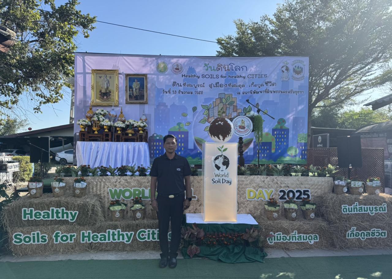วันศุกร์ที่ 19 ธันวาคม 2568 นายองอาจ นักฟ้อน ผู้อำนวยการสถานีพัฒนาที่ดินสุพรรณบุรี ได้รับเชิญจากสถานีพัฒนาที่ดินพระนครศรีอยุธยาร่วมกิจกรรมงานวันดินโลก World Soil Day 2025 จังหวัดพระนครศรีอยุธยา ภายใต้หัวข้อ "Healthy soils for healthy cities : ดินที่สมบูรณ์ สู่เมืองที่สมดุล เกื้อกูลชีวิต”