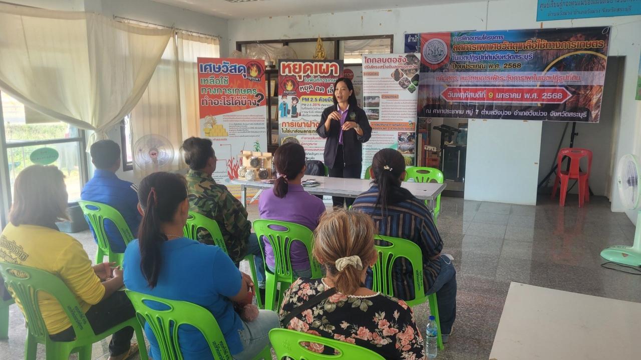วันที่ 9 มกราคม 2568 เวลา 09.00 น. นางปวีณา ยงยืน ผู้อำนวยการสถานีพัฒนาที่ดินสระบุรี มอบหมายให้ นางวรรฒณา กรองทอง นักวิชาการเกษตรชำนาญการ ร่วมกับสำนักงานปฏิรูปที่ดินสระบุรี เป็นวิทยากรฝึกอบรมโครงการลดการเผาเศษวัสดุเหลือใช้ทางการเกษตรในเขตปฏิรูปที่ดินจังหวัดสระบุรี ปีงบประมาณ พ.ศ.2568 (หลักสูตร ที่ 1 แนวทางการเฝ้าระวังการเผาในเขตปฏิรูปที่ดิน) เรื่อง "แนวทางการเฝ้าระวังการเผาในเขตปฏิรูปที่ดิน และมาตรการป้องกันและแก้ไขปัญหาการเผาในพื้นที่เกษตรกรรม" โดยมีเกษตรกรเข้าร่วม จํานวน 15 ราย ณ ศาลาประชาคมหมู่ 7 ตําบลวังม่วง อำเภอวังม่วง จังหวัดสระบุรี