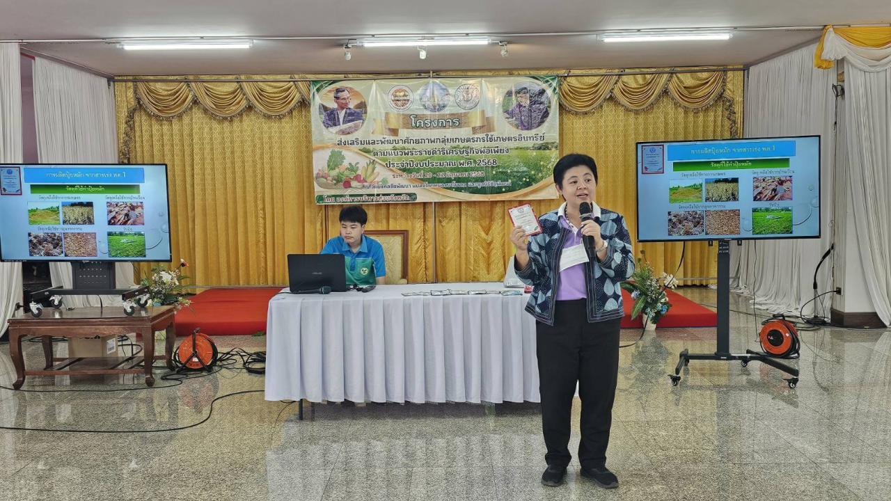 วันที่ วันที่ 21 มิถุนายน 2568 นางปวีณา ยงยืน ผู้อำนวยการสถานีพัฒนาที่ดินสระบุรีมอบหมายนางสาวสายวรุน แสนเมืองมูล ร่วมถ่ายทอดองค์ความรู้ของกรมพัฒนาที่ดินในโครงการส่งเสริมและพัฒนาศักยภาพกลุ่มเกษตรกรใช้เกษตรอินทรีย์ตามแนวพระราชดำริเศรษฐกิจพอเพียง ประจำปีงบประมาณ 2568 ณ วัดมงคลชัยพัฒนา อำเภอเฉลิมพระเกียรติ จังหวัดสระบุรี โดยมีวัตถุประสงค์ให้เกษตรกรสามารถใข้องค์ความรู้ด้านเกษตรอินทรีย์ในการทำการเกษตร เพื่อความปลอดภัยของผู้ผลิต ผู้บริโภค พัฒนาความเป็นอยู่ให้ดีขึ้น