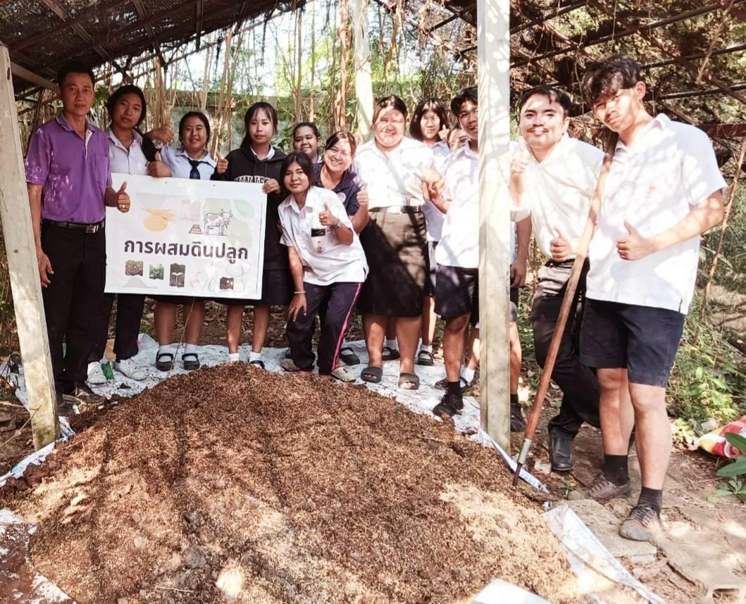 วันศุกร์ที่ 14 กุมภาพันธ์ 2568 เวลา 9.00 น. นางสาวนรินทร์พร นาเมือง ผู้อำนวยการสถานีพัฒนาที่ดินนครปฐม มอบหมายให้นายธราธิป บุญบุตร นักวิชาการเกษตรชำนาญการพิเศษ พร้อมด้วยเจ้าหน้าที่ ดำเนินการต่อยอดโครงการพฤกษศาสตร์ในโรงเรียน (ต่อยอด) โรงเรียนบางเลนวิทยา อำเภอบางเลน จังหวัดนครปฐม โดยสนับสนุนวัสดุทางการเกษตรและปัจจัยการผลิต ปุ๋ยคอก และสาธิตการทำดินผสมพร้อมปลูก และการผลิตปุ๋ยหมักจากเศษใบไม้และวัชพืช เพื่อใช้ในการปรับปรุงบำรุงดินในการปลูกผักสวนครัว และบำรุงต้นไม้ในโครงการพฤกษศาสตร์ ในโรงเรียน ตามวัตถุประสงค์ต่อไป