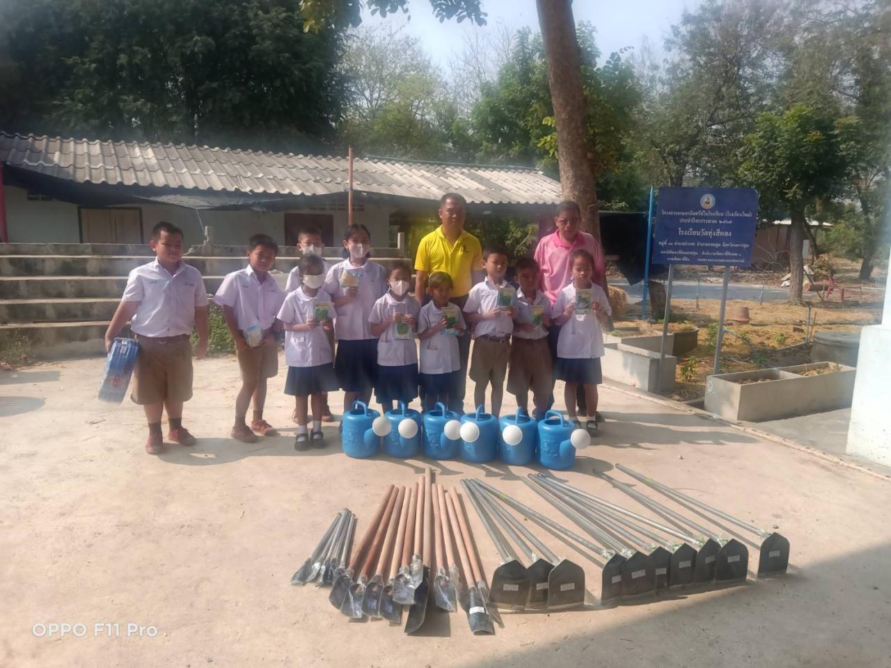 วันอังคารที่ 18 กุมภาพันธ์ 2568 เวลา 9.00 น. นางสาวนรินทร์พร นาเมือง ผู้อำนวยการสถานีพัฒนาที่ดินนครปฐมมอบหมายให้นายอิสเรศ ทองคำ เจ้าพนักงานการเกษตร นำวัสดุอุปกรณ์การเกษตร และเมล็ดพันธุ์พืช สนับสนุนโครงการเกษตรอินทรีย์ในโรงเรียน (ต่อยอด) ปี 2568 โดยมอบวัสดุการเกษตร เมล็ดพันธุ์ อุปกรณ์การเกษตร จอบ พลั่ว เสียม บัวรดน้ำ สายยาง เพื่อเป็นการสนับสนุนโครงการผลิตอาหารปลอดภัยให้กับโรงเรียน โดยมีผู้อำนวยการโรงเรียน คุณครู พร้อมด้วยนักเรียน โรงเรียนทุ่งสีหลง ตำบลลำเหย อำเภอดอนตูม จังหวัดนครปฐม รับมอบของ เพื่อใช้ในกิจกรรมของโรงเรียนต่อไป