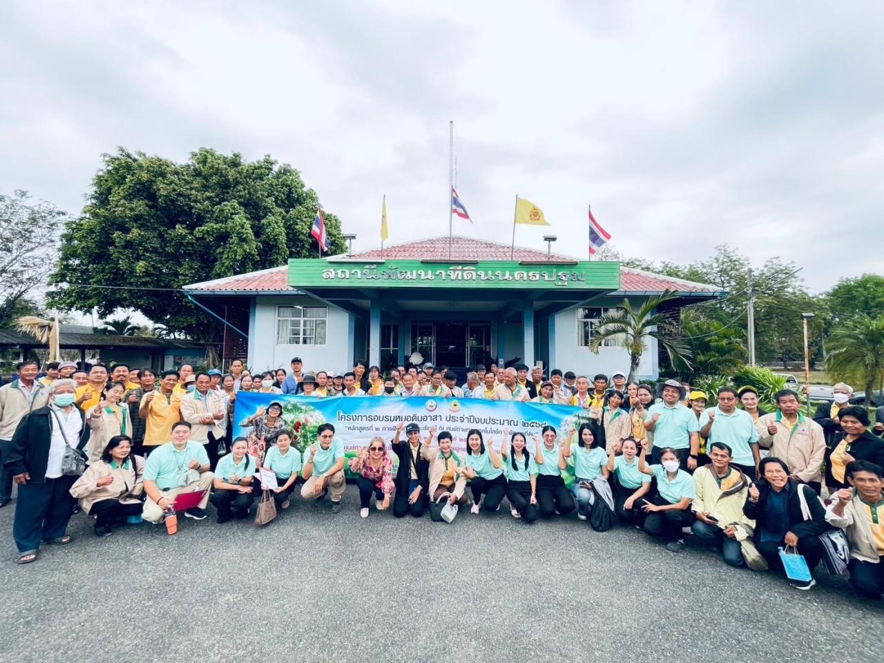 วันอังคารที่ 25 กุมภาพันธ์ 2568 เวลา 8.00 น. นางสาวนรินทร์พร นาเมือง ผู้อำนวยการสถานีพัฒนาที่ดินนครปฐม มอบหมายให้นายกิตติศักดิ์ เผ่าผาง เจ้าพนักงานการเกษตรชำนาญงาน พร้อมด้วยเจ้าหน้าที่ จัดโครงการอบรมหมอดินอาสา ประจำปีงบประมาณ 2568 หลักสูตรที่ 2 การฝึกปฏิบัติและเรียนรู้ ณ ศูนย์ถ่ายทอดเทคโนโลยีการพัฒนาที่ดินสวนกล้วยอู่ทอง อำเภออู่ทอง จังหวัดสุพรรณบุรี หมอดินอาสาได้เข้าศึกษาดูงานฐานเรียนรู้ การปลูกพืชในโรงเรือน การแปรรูปผลิตภัณฑ์จากมะเขือเทศเชอร์รี่ การนำนวัตกรรมเทคโนโลยีของกรมพัฒนาที่ดินมาใช้ เช่น พด. ต่างๆ การผลิตวัสดุปลูก การบริหารจัดการน้ำ และฐานเรียนรู้อื่นๆ โดยนายชาตรี รักธรรม เจ้าของศูนย์ฯ เป็นวิทยากรบรรยาย นอกจากนี้ได้จัดพิธีมอบประกาศนียบัตรหมอดินอาสาดีเด่นในด้านต่างๆ จำนวน 8 ราย เพื่อเป็นเกียรติสร้างขวัญและกำลังใจในการปฏิบัติงานด้านการพัฒนาที่ดินต่อไป หมอดินอาสาที่เข้ารับการอบรมในครั้งนี้ มีจำนวน ทั้งสิ้น 105 ราย ได้รับความรู้เป็นอย่างมากและสามารถนำไปประยุกต์ใช้ในพื้นที่ของตนเองเพื่อให้เกิดประโยชน์อย่างสูงสุดต่อไป