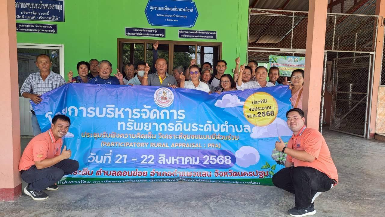 วันพฤหัสบดีที่ 21 สิงหาคม 2568 เวลา 09.00 น. นางสาวนรินทร์พร นาเมือง ผู้อำนวยการสถานีพัฒนาที่ดินนครปฐม มอบหมายนายศิรวิทย์ เชิดชู เจ้าพนักงานการเกษตรชำนาญงาน หน่วยวิชาการเพื่อการพัฒนาที่ดินรับผิดชอบอำเภอกำแพงแสน พร้อมนายนัฐพงษ์ แก้วรัตนชัย นักวิชาการเกษตรชำนาญการ และเจ้าหน้าที่ จัดประชุมหารือจัดประชุมหารือประชุมรับฟังความคิดเห็น วิเคราะห์ชุมชนแบบมีส่วนร่วม (Participatory Rural Appraisal : PRA) โครงการบริหารจัดการทรัพยากรดินระดับตำบล ประจำปีงบประมาณ พ.ศ. 2568 เพื่อรับฟังปัญหาพื้นที่ของชุมชนตำบลนครปฐม ในด้านดิน ด้านพืช ด้านน้ำ จุดเด่น จุดด้อยของชุมชน เพื่อเป็นแนวทางจัดทำแผนการจัดการทรัพยากรดินระดับตำบลต่อไป โดยมีผู้นำชุมชน หมอดินอาสา เกษตรกร เข้าร่วมพูดคุย หารือแลกเปลี่ยนความคิดเห็น ณ ศาลาประชาคม หมู่ที่ 3 ตำบลกระตีบ อำเภอกำแพงแสน จังหวัดนครปฐม