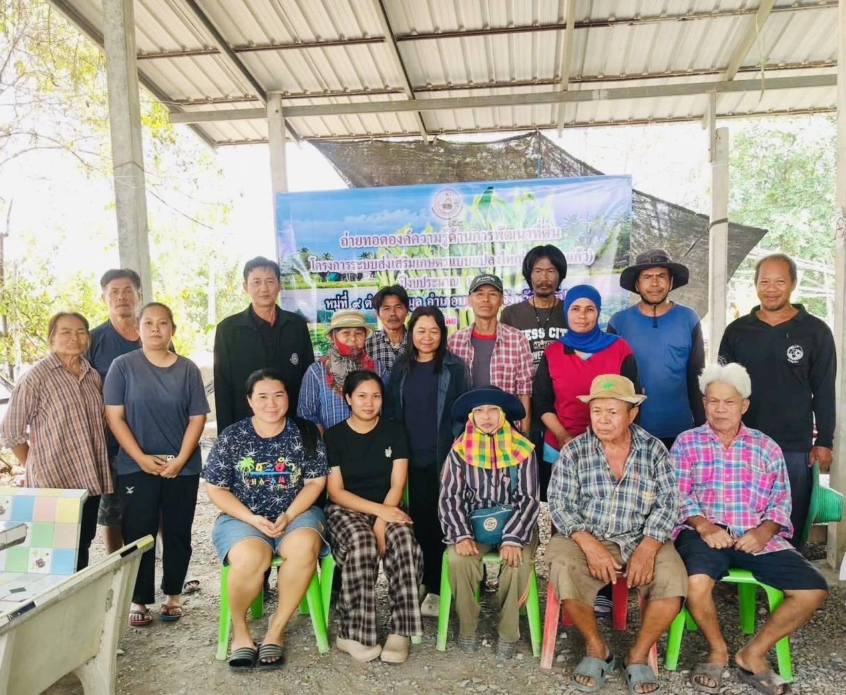 วันศุกร์ที่ 6 มีนาคม 2569 เวลา 9.30 น. นางสาวนรินทร์พร นาเมือง ผู้อำนวยการสถานีพัฒนาที่ดินนครปฐม มอบหมายให้นายธราธิป บุญบุตร นักวิชาการเกษตรชำนาญการพิเศษ ดำเนินการถ่ายทอดองค์ความรู้การพัฒนาที่ดินให้แก่กลุ่มเกษตรกรแปลงใหญ่ (ผักบุ้งแก้ว) (กรมส่งเสริมการเกษตร) ปีงบประมาณ พ.ศ.2569 ณ หมู่ที่ 9 ตำบลหินมูล อำเภอบางเลน จังหวัดนครปฐม ในหัวข้อการจัดการดินเพื่อปลูกพืชอย่างเหมาะสม การปรับปรุงบำรุงดินด้วยปูนมาร์ล การใช้ผลิตภัณฑ์ พด.ของกรมพัฒนาที่ดิน เพื่อย่อยสลายฟางข้าวด้วยสารเร่งซุปเปอร์ พด.2 โดยมีเกษตรกรเข้าร่วมอบรมถ่ายทอดองค์ความรู้การพัฒนาที่ดิน จำนวน 15 ราย