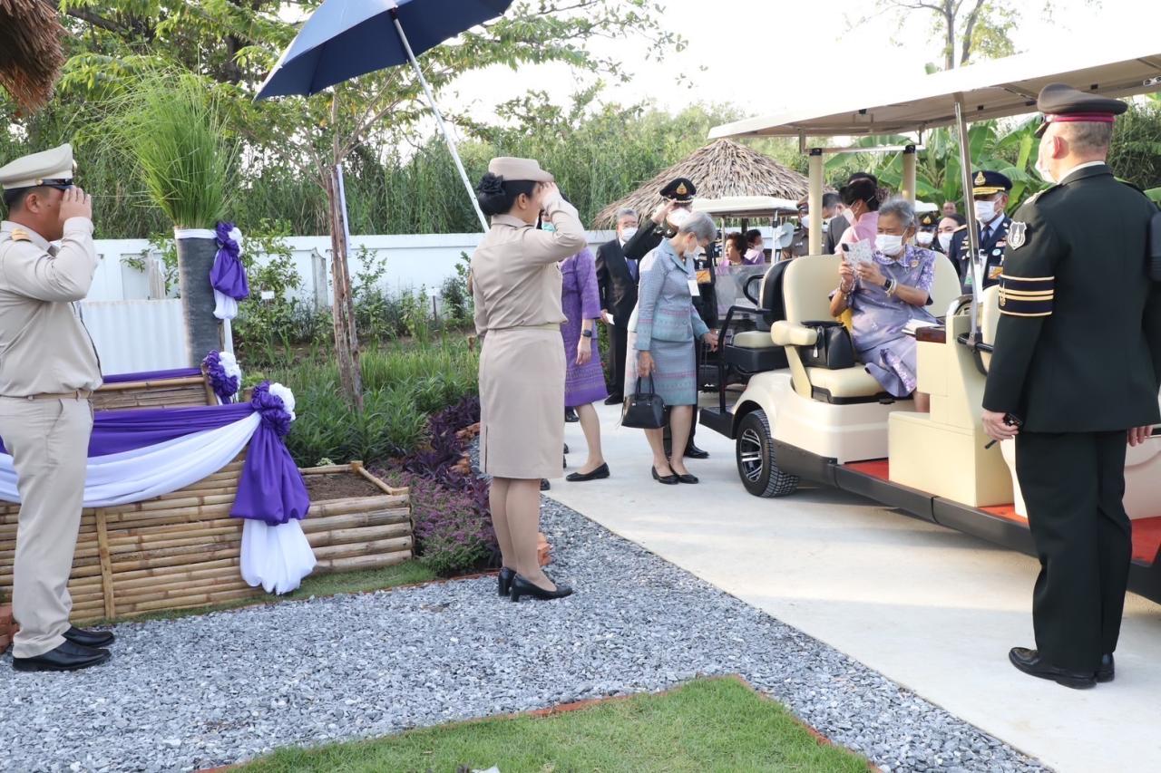 โดยนางมัทธนา ชัยมหาวัน ผู้เชี่ยวชาญด้านวางระบบการพัฒนาที่ดิน สำนักงานพัฒนาที่ดินเขต ๑ เป็นตัวแทนกรมพัฒนาที่ดิน เข้าเฝ้ารับพระราชทานเข็มที่ระลึก ในส่วนนางสาวนรินทร์พร นาเมือง ผู้อำนวยการสถานีพัฒนาที่ดินนครปฐม พร้อมด้วยเจ้าหน้าที่ ร่วมรับเสด็จประจำจุดฐานเรียนรู้การพัฒนาที่ดิน และได้ถวายรายงานการดำเนินงานของ สถานีพัฒนาที่ดินนครปฐม ถึงการสำรวจดิน และเก็บตัวอย่างดิน ไปวิเคราะห์ ก่อนปรับปรุงบำรุงดิน พบว่า ดินส่วนใหญ่เป็นดินเค็ม มีปัญหาด้านการปลูกพืช จึงได้สนับสนุนปัจจัยการผลิตในการปรับปรุงบำรุงดินอย่างต่อเนื่อง และยังเน้นการส่งเสริมการผลิตปุ๋ยหมักสูตรพระราชทาน ด้วยการนำต้นกระฉูด ซึ่งเป็นวัชพืชที่ขึ้นในบริเวณหมู่บ้านเด็กเฉลิมพระเกียรติฯ มาผลิตเป็นปุ๋ยหมักสูตรพระราชทาน และการผลิตน้ำหมักชีวภาพจากสารเร่งซุปเปอร์ พด.๒ นำมาใช้ในการบำรุงพืช เพื่อเป็นการลดการใช้สารเคมี และลดต้นทุนการผลิต เป็นจุดเรียนรู้ด้านการทำเกษตรอินทรีย์ให้กับผู้เยี่ยมชมศูนย์ฯ ต่อไป