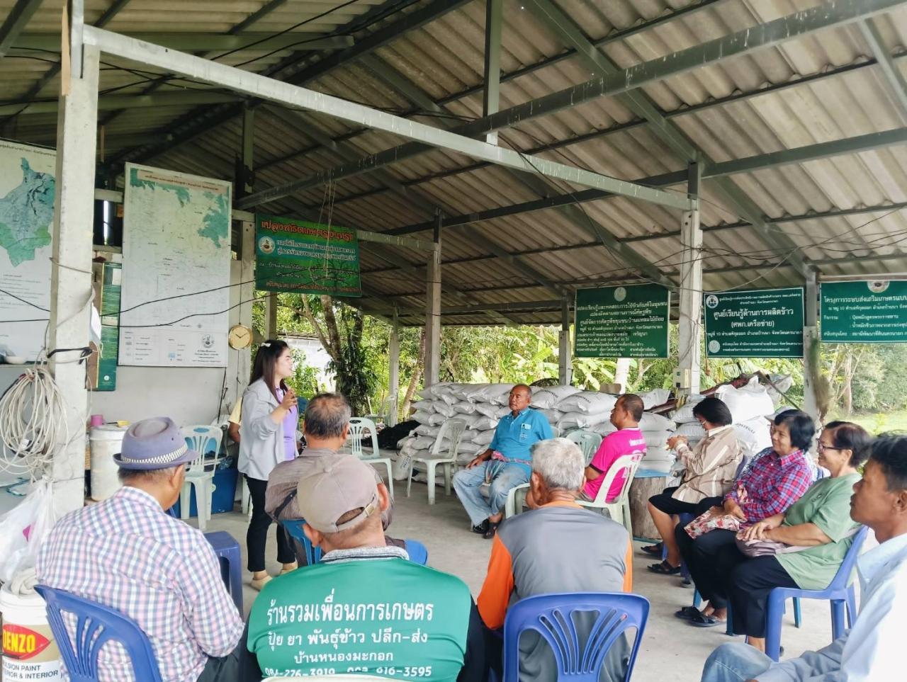 วันศุกร์ที่ 7 มีนาคม พ.ศ. 2568 นางพิสมัย ยกย่อง ผู้อำนวยการสถานีพัฒนาที่ดินนครนายกมอบหมายให้นางสาววรรณา วันดี นักวิชาการเกษตรปฏิบัติการ ลงพื้นที่ส่งเสริมเกษตรกรผลิตปุ๋ยหมัก จากวัสดุเหลือใช้ทางการเกษตร(ตอซัง ฟางข้าว) ช่วยลดปัญหาการเผาตอซังฟางข้าว ในแปลงนาหลังเก็บเกี่ยว และสนับสนุนเมล็ดพันธุ์ปอเทืองเพื่อปรับปรุงบำรุงดินให้แก่สมาชิกกลุ่มแปลงใหญ่นาข้าว และเกษตรกรที่สนใจ ในพื้นที่ ม.10 ต.พิกุลออก อ.บ้านนา จ.นครนายก