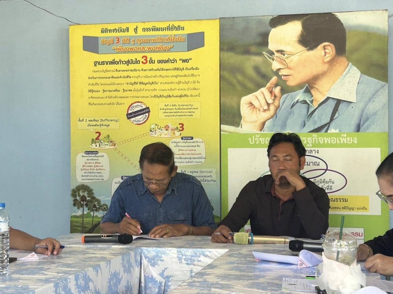 นายรพีพงศ์ หน่วยจันทึก ผู้อำนวยการสถานีพัฒนาที่ดินปทุมธานี มอบหมายให้ นายพิสิฏฐ์ กิมยงค์ นักวิชาการเกษตรปฏิบัติการ เข้าร่วมประชุมคณะกรรมการเครือข่าย ศพก. และแปลงใหญ่ ระดับอำเภอ ครั้งที่ 1 ณ ศพก.อ.สามโคก ม.3 ต.คลองควาย อ.สามโคก จ.ปทุมธานี การประชุมในครั้งนี้เพื่อชี้แจงการขับเคลื่อนการดำเนินงานตามนโยบายของกระทรวงเกษตรและสหกรณ์ ซึ่งมีนโยบายเร่งด่วน 3 สร้าง ประกอบด้วย สร้างรายได้ สร้างตลาด และสร้างโอกาส ในส่วนของสถานีพัฒนาที่ดินปทุมธานีในฐานะภาคีเครือข่ายพร้อมใหการสนับสนุนองค์ความรู้ พร้อมสาธิต เพื่อยกระดับทักษะของเกษตรกรทั้งในโครงการศพก. และแปลงใหญ่ ให้พร้อมรับการเปลี่ยนแปลงไปสู่การผลิตสินค้าเกษตรลดการปล่อยคาร์บอน เช่น การไม่เผาตอซังฟางข้าว ร่วมกับการย่อยสลายวัสดุดังกล่าวด้วยผลิตภัณฑ์จุลินทรีย์ย่อยสลายตอซัง พด.17 และใช้น้ำหมักชีวภาพจากสารเร่งซุปเปอร์ พด.2 ในการเพิ่มความอุดสมบูรณ์ของดินในแปลงนา รวมถึงความอุดมสมบูรณ์ของดินในแปลงปลูกพืชเกษตรชนิดอื่น อาทิ ผักกาดหอม กล้วยน้ำว้า เป็นต้น