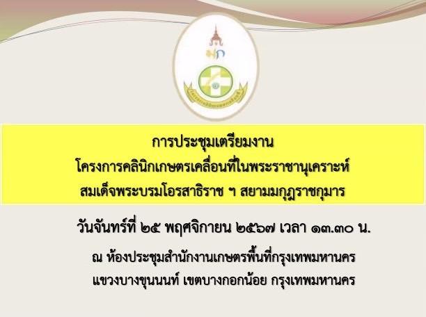 วันจันทร์ที่ 25 พฤศจิกายน 2567 เวลา 13.30 น. นางสาวนัทฐา ทักษ์รัตนศรัณย์ ผู้อำนวยการสถานีพัฒนาที่ดินกรุงเทพมหานคร มอบหมายให้ นางสาวสุภาภรณ์ นามบุญสา นักวิชาการเกษตรปฏิบัติการ และนางเรณู ดีศิริ เจ้าหน้าที่ระบบงานคอมพิวเตอร์ เข้าร่วมประชุมเตรียมงานโครงการคลินิกเกษตรเคลื่อนที่ในพระราชานุเคราะห์สมเด็จพระบรมโอรสาธิราชฯ สยามมกุฎราชกุมาร ไตรมาส 1 ประจำปีงบประมาณ 2568 ผ่านระบบประชุมทางไกล (Zoom Meeting) โดยมีนายธงอาจ จันทร์แดง เกษตรกรุงเทพมหานคร เป็นประธานการประชุม ซึ่งมีกำหนดจัดงานคลินิกเกษตรเคลื่อนที่ในวันอังคารที่ 17 ธันวาคม 2567 ณ วัดทุ่งครุ แขวงทุ่งครุ เขตทุ่งครุ กรุงเทพมหานคร