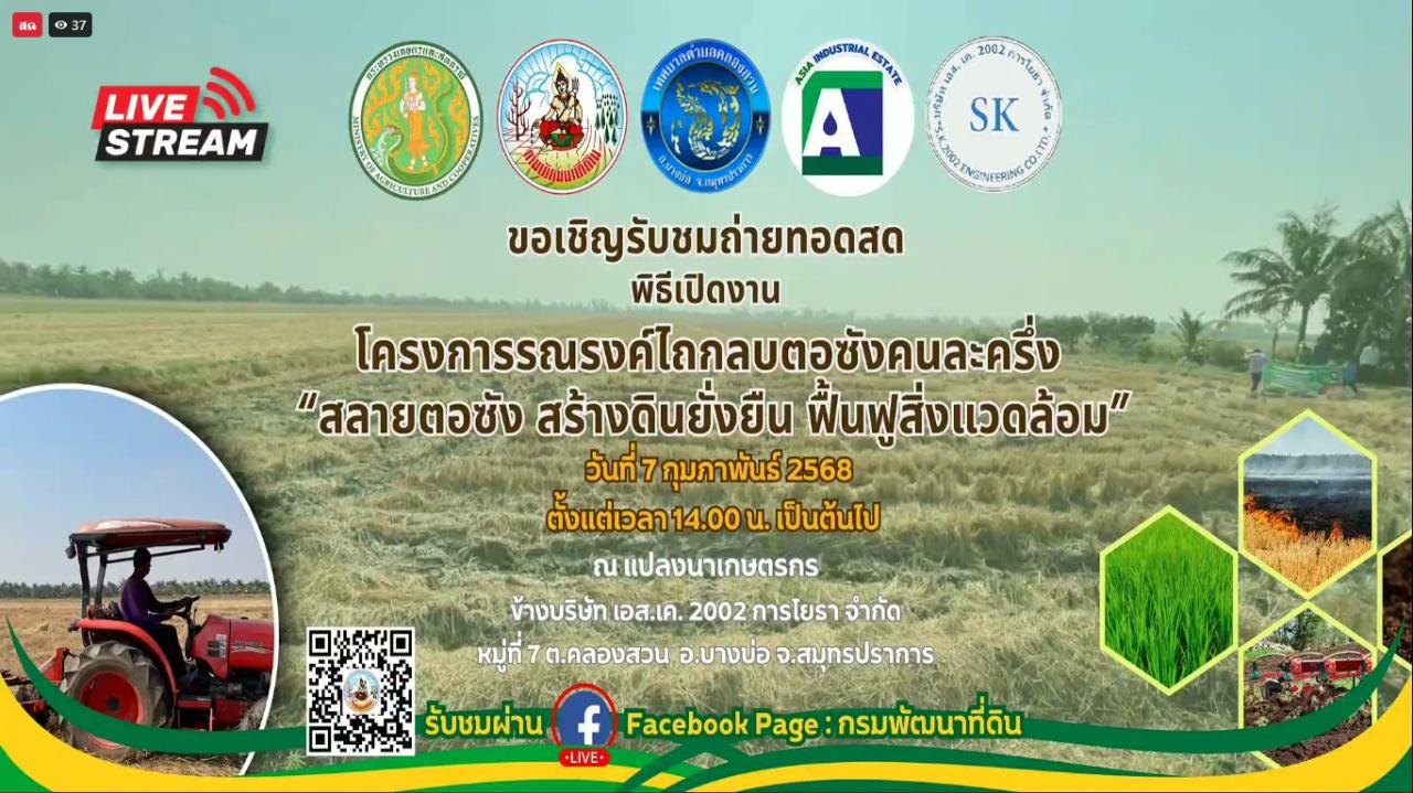 วันศุกร์ที่ 7 กุมภาพันธ์ 2568 นางสาวนัทฐา ทักษ์รัตนศรัณย์ ผู้อำนวยการสถานีพัฒนาที่ดินกรุงเทพมหานคร พร้อมด้วย นายกฤษฎา จงดี เจ้าพนักงานการเกษตรปฏิบัติงาน และนางสาวอริศชา สิงหมงคล นักวิชาการเกษตร เข้าร่วมงานโครงการรณรงค์ไถกลบตอซังคนละครึ่ง “สลายตอซัง สร้างดินยั่งยืน ฟื้นฟูสิ่งแวดล้อม” ประจำปีงบประมาณ พ.ศ. 2568 ณ แปลงนาเกษตรกร ข้างบริษัท เอส.เค. 2002 การโยธา จำกัด หมู่ที่ 7 ตำบลคลองสวน อำเภอบางบ่อ จังหวัดสมุทรปราการ โดยมีนายอัครา พรหมเผ่า รัฐมนตรีช่วยว่าการกระทรวงเกษตรและสหกรณ์ เป็นประธานในพิธีเปิดงาน ซึ่งวัตถุประสงค์ของโครงการ เพื่อสร้างความตระหนักให้เกษตรกรทำเกษตรกรรมที่ไม่เผาฟางและตอซังพืช ช่วยให้คุณสมบัติของดินดีไม่ถูกทำลาย เพิ่มอินทรียวัตถุในดินสามารถใช้ประโยชน์ที่ดินได้อย่างเหมาะสมและยั่งยืน ลดปัญหาหมอกควันฝุ่นละออง ลดผลกระทบต่อการเกิดภาวะโลกร้อน