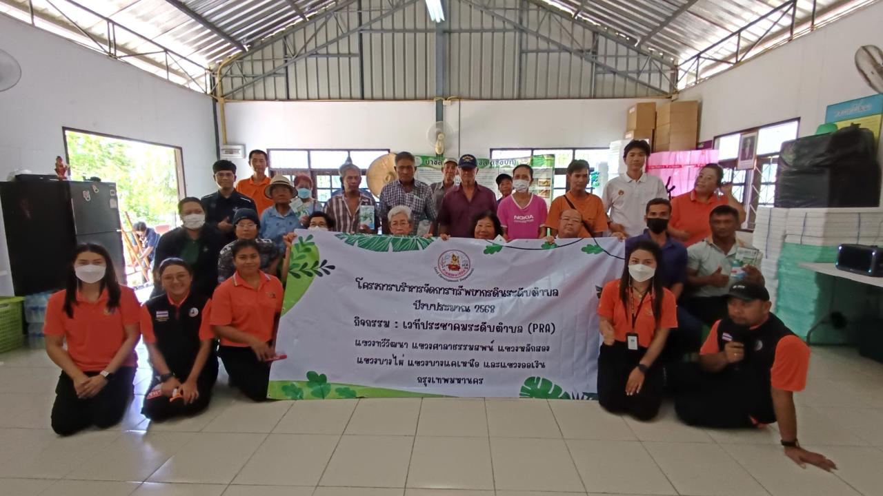 วันพฤหัสบดีที่ 26 มิถุนายน 2568 นางสาวนัทฐา ทักษ์รัตนศรัณย์ ผู้อำนวยการสถานีพัฒนาที่ดินกรุงเทพมหานคร มอบหมายให้เจ้าหน้าที่สถานีพัฒนาที่ดินกรุงเทพมหานคร ลงพื้นที่ร่วมกับผู้แทนจากหน่วยงานภาคี ประกอบด้วย สำนักงานเกษตรพื้นที่ 4 สำนักพัฒนาสังคม และสำนักงานเขตทวีวัฒนา ดำเนินงานโครงการบริหารจัดการทรัพยากรดินระดับตำบล ปีงบประมาณ 2568 ในกิจกรรมวิเคราะห์ชุมชนแบบมีส่วนร่วม (PRA) โดยมีผู้นำชุมชนและเกษตรกรผู้มีส่วนได้ส่วนเสียแขวงศาลาธรรมสพน์เข้าร่วมให้ข้อมูล สอบถามความต้องการ ปัญหาในพื้นที่ และเสนอแนวทางแก้ไขปัญหาทางด้านการเกษตร เพื่อวางเเผนการใช้ที่ดินเเบบบูรณาการ ณ ศูนย์บริการและถ่ายทอดเทคโนโลยีการเกษตรประจำตำบล (ศบกต.) แขวงทวีวัฒนา เขตทวีวัฒนา กรุงเทพมหานคร