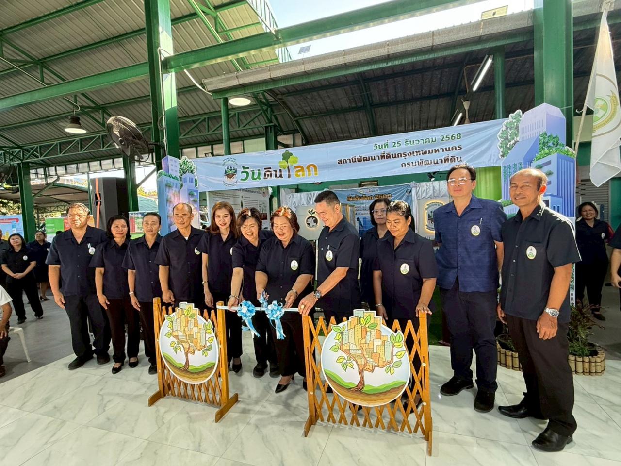 วันพฤหัสบดีที่ 25 ธันวาคม 2568 สถานีพัฒนาที่ดินกรุงเทพมหานคร ดำเนินการจัดงานวันดินโลก (World Soil Day) ปี 2568 ภายใต้หัวข้อ "Healthy soils for Healthy cities ดินที่สมบูรณ์ สู่เมืองที่สมดุล เกื้อกูลชีวิต" โดยมี นางสาวอัญชลี ศรีสวัสดิ์ ผู้อำนวยการเขตทวีวัฒนา ให้เกียรติเป็นประธานเปิดงาน พร้อมด้วยหัวหน้าส่วนราชการ ผู้แทนหน่วยงาน เครือข่ายเกษตรกร หมอดินอาสา และประชาชนในพื้นที่ เข้าร่วมงาน ซึ่งกิจกรรมภายในงานมีการจัดนิทรรศการเฉลิมพระเกียรติพระบาทสมเด็จพระบรมชนกาธิเบศร มหาภูมิพลอดุลยเดชมหาราช บรมนาถบพิตร ในด้านการพัฒนาที่ดิน นิทรรศการโครงการพระราชดำริ ศูนย์ศึกษาการพัฒนาอันเนื่องมาจากพระราชดำริ นิทรรศการหญ้าแฝก ศาสตร์พระราชา เพื่อการพัฒนาที่ดิน นิทรรศการเทิดพระเกียรติ สมเด็จพระนางเจ้าสิริกิติ์ พระบรมราชินีนาถ พระบรมราชชนนีพันปีหลวง นิทรรศการวันดินโลก หัวข้อ "Healthy soils for Healthy cities ดินที่สมบูรณ์ สู่เมืองที่สมดุล เกื้อกูลชีวิต" ประกอบด้วยองค์ความรู้ด้านการปิดทับหน้าดิน (Soil Sealing) การปลูกผักคนเมือง ดินผสมปลูก และกระถางรักษ์โลก นอกจากนี้ยังให้บริการผลิตภัณฑ์จุลินทรีย์กรมพัฒนาที่ดิน น้ำหมักชีวภาพจากสารเร่งซุปเปอร์ พด.2 ดินผสมปลูกสูตรคนเมือง รวมถึงของที่ระลึก ให้แก่ผู้เข้าร่วมชมงานทุกท่าน ณ ศาลาชุมชนร่วมเกื้อ แขวงทวีวัฒนา เขตทวีวัฒนา กรุงเทพมหานคร