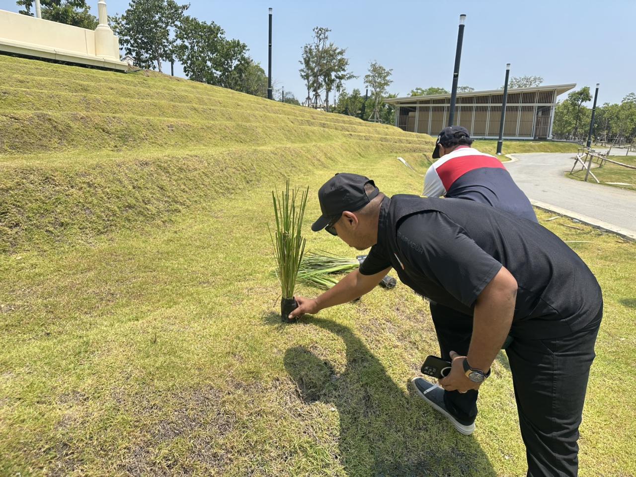 วันอังคารที่ 7 เมษายน 2569 นางสาวนัทฐา ทักษ์รัตนศรัณย์ ผู้อำนวยการสถานีพัฒนาที่ดินกรุงเทพมหานคร มอบหมายให้นายกฤษฎา จงดี เจ้าพนักงานการเกษตรปฏิบัติงาน และนางสาวอริศชา สิงหมงคล นักวิชาการเกษตร สถานีพัฒนาที่ดินกรุงเทพมหานคร ลงพื้นที่เพื่อเตรียมความพร้อมดำเนินงานส่งเสริมการปลูกหญ้าแฝก ในพื้นที่อุทยานเฉลิมพระเกียรติพระบาทสมเด็จพระบรมชนกาธิเบศร มหาภูมิพลอดุลยเดชมหาราช บรมนาถบพิตร พร้อมทั้งแนะนำการกำจัดวัชพืชและการดูแลรักษาในช่วงต้นฤดูร้อนควรเน้นการให้น้ำอย่างสม่ำเสมอ ณ อุทยานเฉลิมพระเกียรติพระบาทสมเด็จพระมหาภูมิพลอดุลยเดชมหาราช บรมนาถบพิตร